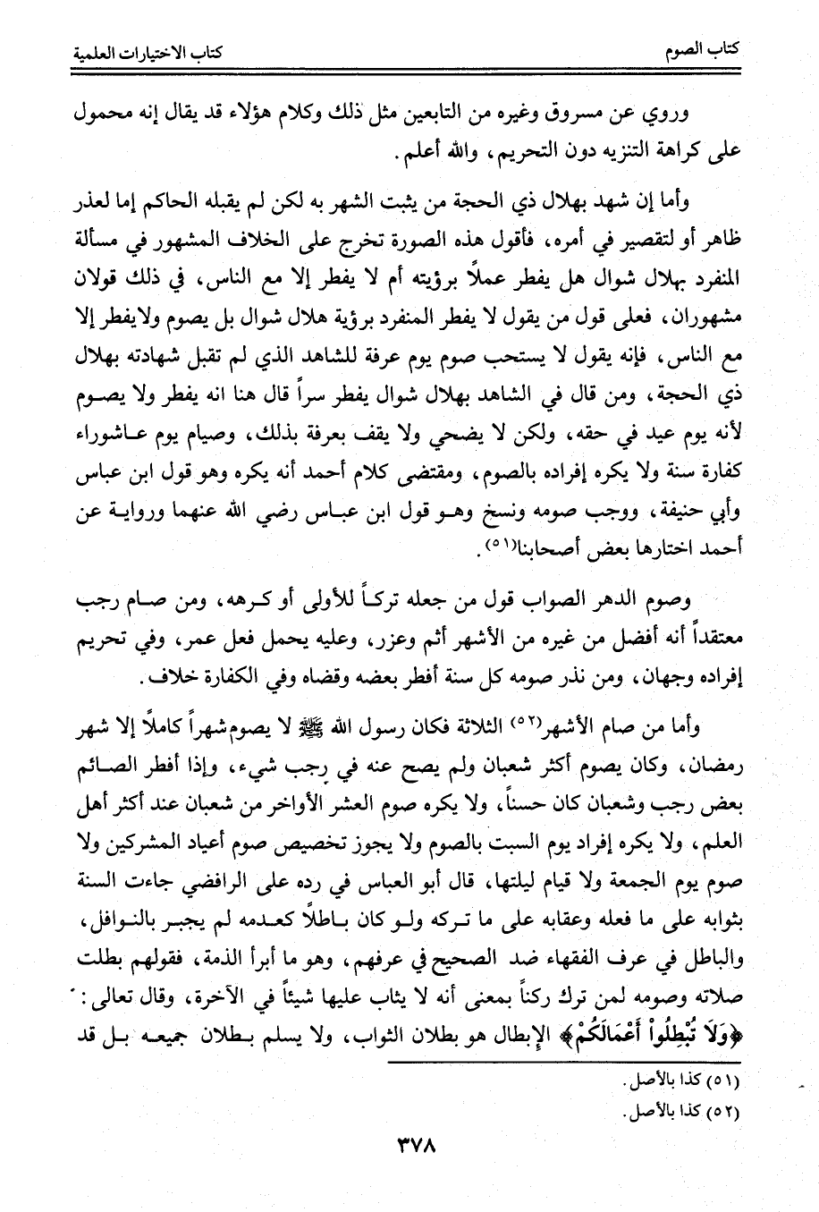 وَأَمَّا مَنْ صَامَ الْأَشْهُرَ الثَّلَاثَةَ «فَكَانَ رَسُولُ اللَّهِ - صَلَّى اللَّهُ عَلَيْهِ وَسَلَّمَ - لَا يَصُومُ شَهْرًا كَامِلًا إلَّا شَهْرَ رَمَضَانَ، وَكَانَ يَصُومُ أَكْثَرَ شَعْبَانَ» وَلَمْ يَصِحَّ عَنْهُ فِي رَجَبٍ شَيْءٌ، وَإِذَا أَفْطَرَ الصَّائِمُ بَعْضَ رَجَبٍ وَشَعْبَانَ كَانَ حَسَنًا، وَلَا يُكْرَهُ صَوْمُ الْعَشْرِ الْأَوَاخِرِ مِنْ شَعْبَانَ عِنْدَ أَكْثَرِ أَهْلِ الْعِلْمِ، وَلَا يُكْرَهُ إفْرَادُ يَوْمِ السَّبْتِ بِالصَّوْمِ وَلَا يَجُوزُ تَخْصِيصُ صَوْمِ أَعْيَادِ الْمُشْرِكِينَ وَلَا صَوْمُ يَوْمِ الْجُمُعَةِ وَلَا قِيَامُ لَيْلَتِهَا، قَالَ أَبُو الْعَبَّاسِ فِي رَدِّهِ عَلَى الرَّافِضِيِّ جَاءَتْ السُّنَّةُ بِثَوَابِهِ عَلَى مَا فَعَلَهُ وَعِقَابُهُ عَلَى مَا تَرَكَهُ وَلَوْ كَانَ بَاطِلًا كَعَدَمِهِ لَمْ يُجْبَرْ بِالنَّوَافِلِ، وَالْبَاطِلُ فِي عُرْفِ الْفُقَهَاءِ ضِدُّ الصَّحِيحِ فِي عُرْفِهِمْ، وَهُوَ مَا أَبْرَأَ الذِّمَّةَ، فَقَوْلُهُمْ بَطَلَتْ صَلَاتُهُ وَصَوْمُهُ لِمَنْ تَرَكَ رُكْنًا بِمَعْنَى أَنَّهُ لَا يُثَابُ عَلَيْهَا شَيْئًا فِي الْآخِرَةِ، وَقَالَ تَعَالَى: {وَلا تُبْطِلُوا أَعْمَالَكُمْ} [محمد: 33] الْإِبْطَالُ هُوَ بُطْلَانُ الثَّوَابِ، وَلَا يُسَلَّمُ بُطْلَانُ جَمِيعِهِ بَلْ قَدْ
