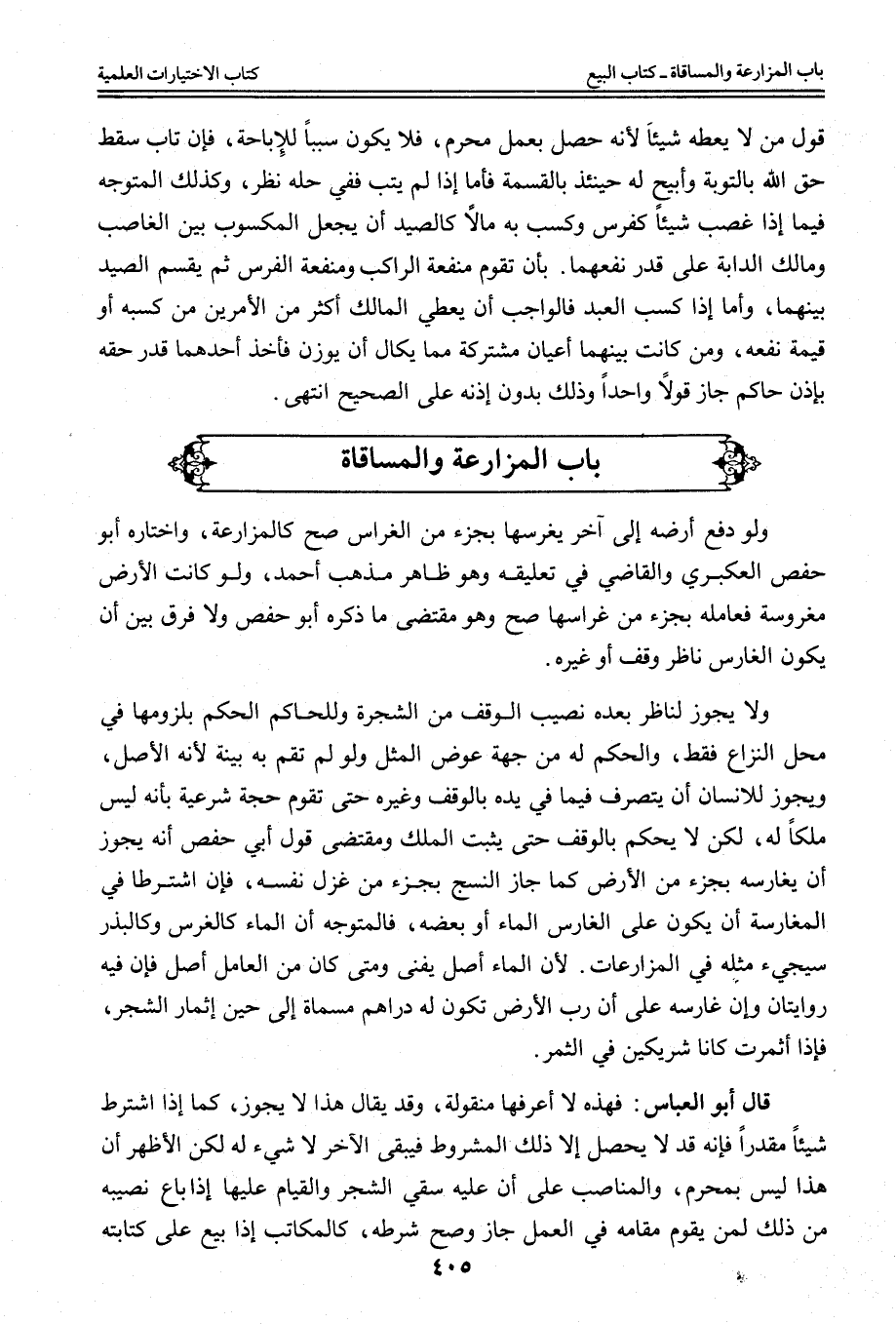 [بَابُ الْمُزَارَعَةِ وَالْمُسَاقَاةِ]