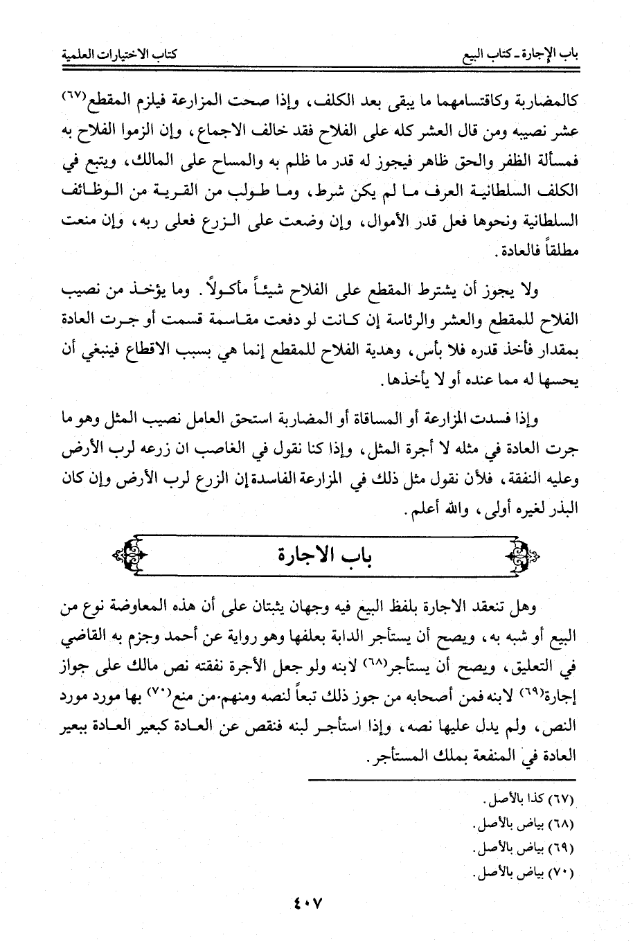 كَالْمُضَارَبَةِ وَكَاقْتِسَامِهِمَا مَا يَبْقَى بَعْدَ الْكَلَفِ، وَإِذَا صَحَّتْ الْمُزَارَعَةُ فَيَلْزَمُ الْمُقْطِعَ عُشْرُ نَصِيبِهِ وَمَنْ قَالَ الْعُشْرُ كُلُّهُ عَلَى الْفَلَّاحِ فَقَدْ خَالَفَ الْإِجْمَاعَ، وَإِنْ أَلْزَمُوا الْفَلَّاحَ بِهِ فَمَسْأَلَةُ الظُّفْرِ وَالْحَقُّ ظَاهِرٌ فَيَجُوزُ لَهُ قَدْرُ مَا ظُلِمَ بِهِ وَالْمَسَّاحُ عَلَى الْمَالِكِ، وَيَتْبَعُ فِي الْكُلَفِ السُّلْطَانِيَّةِ الْعُرْفَ مَا لَمْ يَكُنْ شَرْطٌ، وَمَا طُولِبَ مِنْ الْقَرْيَةِ مِنْ الْوَظَائِفِ السُّلْطَانِيَّةِ وَنَحْوِهَا فَعَلَ قَدْرَ الْأَمْوَالِ، وَإِنْ وُضِعَتْ عَلَى الزَّرْعِ فَعَلَى رَبِّهِ، وَإِنْ مُنِعَتْ مُطْلَقًا فَالْعَادَةُ.