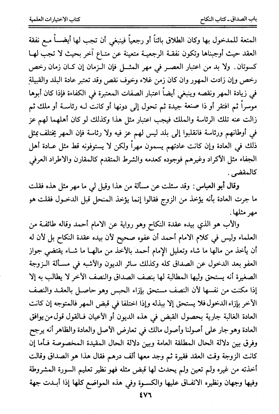 وَقَالَ أَبُو الْعَبَّاسِ: وَقَدْ سُئِلْت عَنْ مَسْأَلَةٍ مِنْ هَذَا وَقِيلَ لِي مَا مَهْرُ مِثْلِ هَذِهِ فَقُلْت مَا جَرَتْ الْعَادَةُ بِأَنَّهُ يُؤْخَذُ مِنْ الزَّوْجِ فَقَالُوا إنَّمَا يُؤْخَذُ الْمُنْحَلُّ قَبْلَ الدُّخُولِ فَقُلْت هُوَ مَهْرُ مِثْلِهَا.