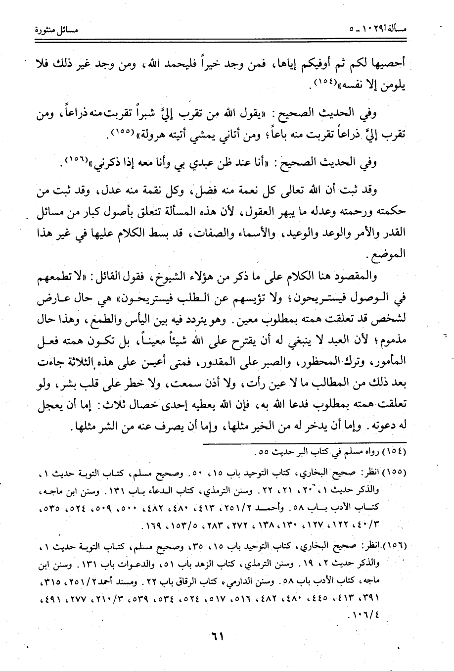 وَقَدْ ثَبَتَ أَنَّ اللَّهَ تَعَالَى كُلُّ نِعْمَةٍ مِنْهُ فَضْلٌ، وَكُلُّ نِقْمَةٍ مِنْهُ عَدْلٌ، وَقَدْ ثَبَتَ مِنْ حِكْمَتِهِ وَرَحْمَتِهِ وَعَدْلِهِ مَا يُبْهِرُ الْعُقُولَ، لِأَنَّ هَذِهِ الْمَسْأَلَةَ تَتَعَلَّقُ بِأُصُولٍ كِبَارٍ مِنْ مَسَائِلِ الْقَدَرِ وَالْأَمْرِ وَالْوَعْدِ وَالْوَعِيدِ، وَالْأَسْمَاءِ وَالصِّفَاتِ، قَدْ بُسِطَ الْكَلَامُ عَلَيْهَا فِي غَيْرِ هَذَا الْمَوْضِعِ.