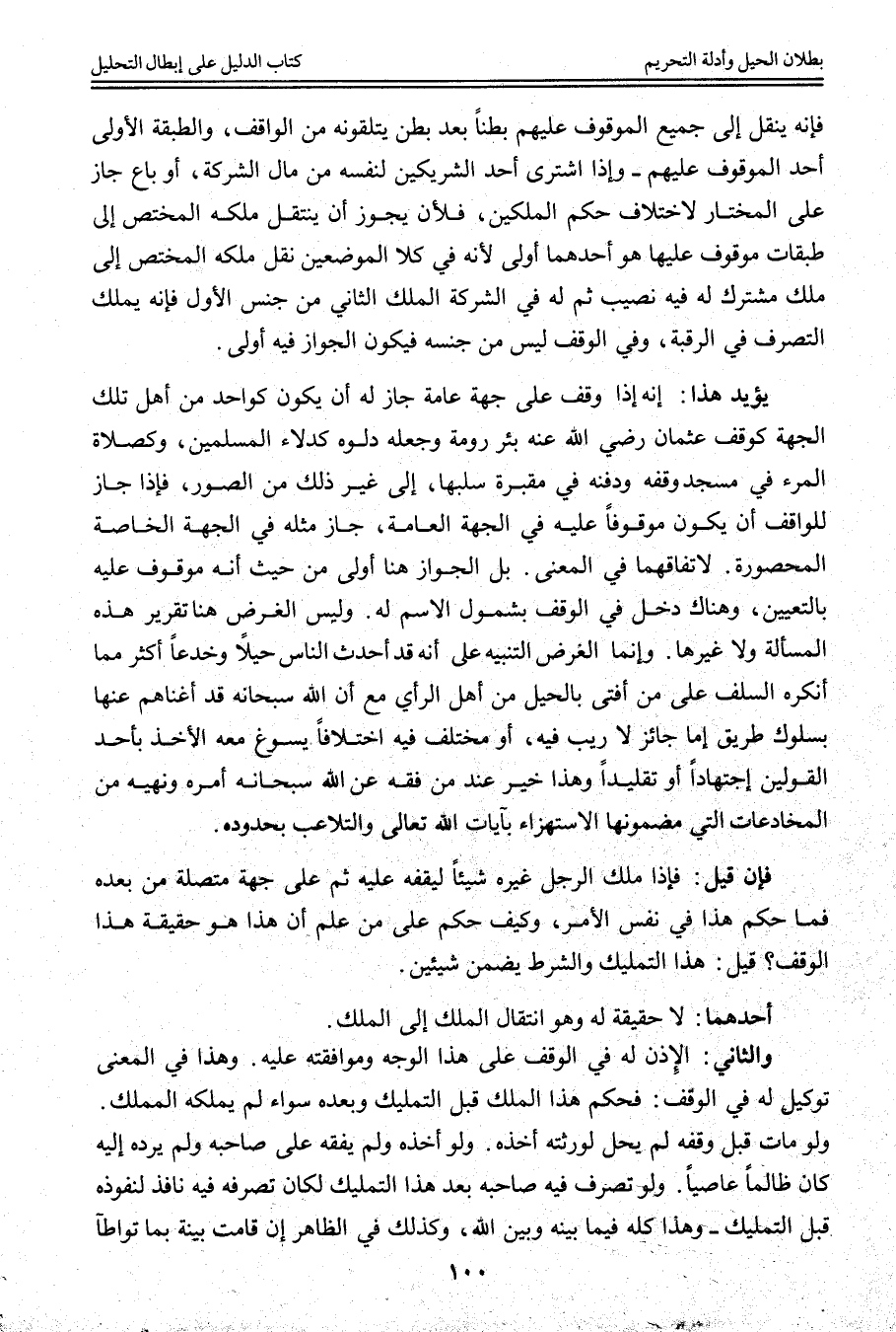 وَلَيْسَ الْغَرَضُ هُنَا تَقْرِيرَ هَذِهِ الْمَسْأَلَةِ وَلَا غَيْرِهَا. وَإِنَّمَا الْغَرَضُ التَّنْبِيهُ عَلَى أَنَّهُ قَدْ أَحْدَثَ النَّاسُ، حِيَلًا وَخُدَعًا أَكْثَرَ مِمَّا أَنْكَرَهُ السَّلَفُ عَلَى مَنْ أَفْتَى بِالْحِيَلِ مِنْ أَهْلِ الرَّأْيِ مَعَ أَنَّ اللَّهَ سُبْحَانَهُ قَدْ أَغْنَاهُمْ عَنْهَا بِسُلُوكِ طَرِيقٍ إمَّا جَائِزٍ لَا رَيْبَ فِيهِ، أَوْ مُخْتَلَفٍ فِيهِ اخْتِلَافًا يَسُوغُ مَعَهُ الْأَخْذُ بِأَحَدِ الْقَوْلَيْنِ اجْتِهَادًا، أَوْ تَقْلِيدًا وَهَذَا خَيْرٌ عِنْدَ مَنْ فَقِهَ عَنْ اللَّهِ سُبْحَانَهُ أَمْرَهُ وَنَهْيَهُ مِنْ الْمُخَادَعَاتِ الَّتِي مَضْمُونُهَا الِاسْتِهْزَاءُ بِآيَاتِ اللَّهِ تَعَالَى وَالتَّلَاعُبُ بِحُدُودِهِ.