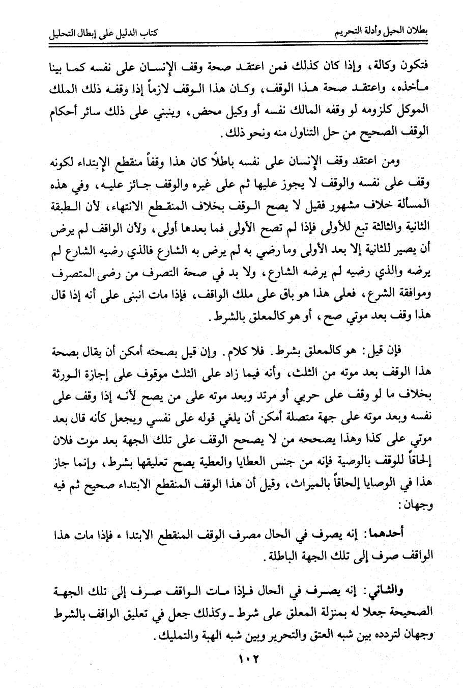 وَمَنْ اعْتَقَدَ وَقْفَ الْإِنْسَانِ عَلَى نَفْسِهِ بَاطِلًا كَانَ هَذَا وَقْفًا مُنْقَطِعَ الِابْتِدَاءِ لِكَوْنِهِ وَقَفَ عَلَى نَفْسِهِ وَالْوَقْفُ لَا يَجُوزُ عَلَيْهَا، ثُمَّ عَلَى غَيْرِهِ وَالْوَقْفُ جَائِزٌ عَلَيْهِ، وَفِي هَذِهِ الْمَسْأَلَةِ خِلَافٌ مَشْهُورٌ فَقِيلَ لَا يَصِحُّ الْوَقْفُ بِخِلَافِ الْمُنْقَطِعِ الِانْتِهَاءِ؛ لِأَنَّ الطَّبَقَةَ الثَّانِيَةَ وَالثَّالِثَةَ تَبَعٌ لِلْأُولَى فَإِذَا لَمْ تَصِحَّ الْأُولَى فَمَا بَعْدَهَا أَوْلَى، وَلِأَنَّ الْوَاقِفَ لَمْ يَرْضَ أَنْ يَصِيرَ لِلثَّانِيَةِ إلَّا بَعْدَ الْأُولَى وَمَا رَضِيَ بِهِ لَمْ يَرْضَ بِهِ الشَّارِعُ فَاَلَّذِي رَضِيَهُ الشَّارِعُ لَمْ يَرْضَهُ وَاَلَّذِي رَضِيَهُ لَمْ يَرْضَهُ الشَّارِعُ، وَلَا بُدَّ فِي صِحَّةِ التَّصَرُّفِ مِنْ رِضَى الْمُتَصَرِّفِ وَمُوَافَقَةِ الشَّرْعِ، فَعَلَى هَذَا هُوَ بَاقٍ عَلَى مِلْكِ الْوَاقِفِ، فَإِذَا مَاتَ انْبَنَى عَلَى أَنَّهُ إذَا قَالَ هَذَا وَقْفٌ بَعْدَ مَوْتِي صَحَّ، أَوْ هُوَ كَالْمُعَلَّقِ بِالشَّرْطِ. فَإِنْ قِيلَ: هُوَ كَالْمُعَلَّقِ بِشَرْطٍ. فَلَا كَلَامَ.