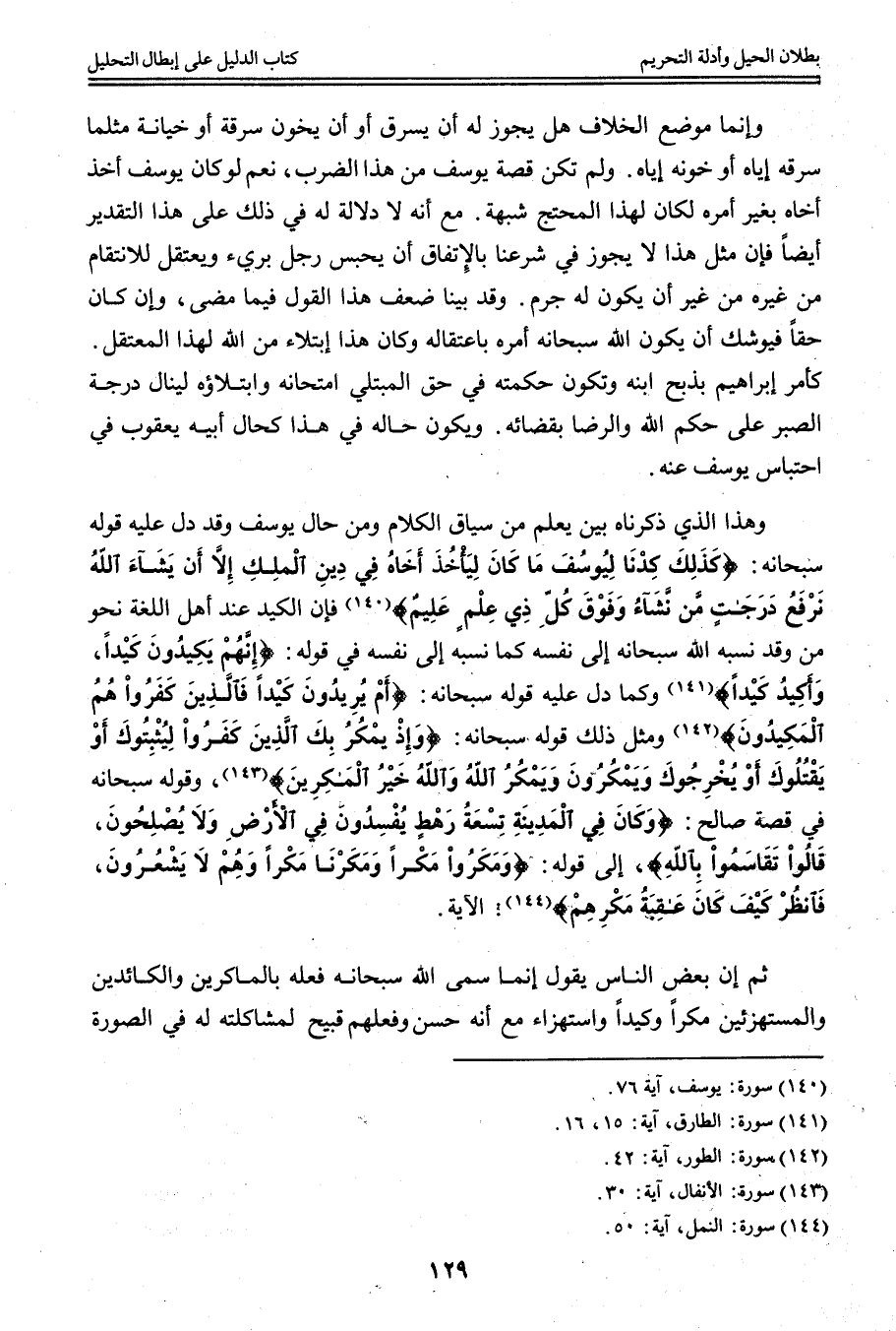 وَهَذَا الَّذِي ذَكَرْنَاهُ بَيِّنٌ يُعْلَمُ مِنْ سِيَاقِ الْكَلَامِ وَمِنْ حَالِ يُوسُفَ وَقَدْ دَلَّ عَلَيْهِ قَوْلُهُ سُبْحَانَهُ: {كَذَلِكَ كِدْنَا لِيُوسُفَ مَا كَانَ لِيَأْخُذَ أَخَاهُ فِي دِينِ الْمَلِكِ إِلا أَنْ يَشَاءَ اللَّهُ نَرْفَعُ دَرَجَاتٍ مَنْ نَشَاءُ وَفَوْقَ كُلِّ ذِي عِلْمٍ عَلِيمٌ} [يوسف: 76] فَإِنَّ الْكَيْدَ عِنْدَ أَهْلِ اللُّغَةِ نَحْوُ مَنٍّ وَقَدْ نَسَبَهُ اللَّهُ سُبْحَانَهُ إلَى يُوسُفَ كَمَا نَسَبَهُ إلَى نَفْسِهِ فِي قَوْلِهِ: {إِنَّهُمْ يَكِيدُونَ كَيْدًا} [الطارق: 15] {وَأَكِيدُ كَيْدًا} [الطارق: 16] وَكَمَا دَلَّ عَلَيْهِ قَوْلُهُ سُبْحَانَهُ: {أَمْ يُرِيدُونَ كَيْدًا فَالَّذِينَ كَفَرُوا هُمُ الْمَكِيدُونَ} [الطور: 42] وَمِثْلُ ذَلِكَ قَوْلُهُ سُبْحَانَهُ: {وَإِذْ يَمْكُرُ بِكَ الَّذِينَ كَفَرُوا لِيُثْبِتُوكَ أَوْ يَقْتُلُوكَ أَوْ يُخْرِجُوكَ وَيَمْكُرُونَ وَيَمْكُرُ اللَّهُ وَاللَّهُ خَيْرُ الْمَاكِرِينَ} [الأنفال: 30] ، وَقَوْلُهُ سُبْحَانَهُ فِي قِصَّةِ صَالِحٍ: {وَكَانَ فِي الْمَدِينَةِ تِسْعَةُ رَهْطٍ يُفْسِدُونَ فِي الأَرْضِ وَلا يُصْلِحُونَ - قَالُوا تَقَاسَمُوا بِاللَّهِ} [النمل: 48 - 49] إلَى قَوْلِهِ: {وَمَكَرُوا مَكْرًا وَمَكَرْنَا مَكْرًا وَهُمْ لا يَشْعُرُونَ - فَانْظُرْ كَيْفَ كَانَ عَاقِبَةُ مَكْرِهِمْ} [النمل: 50 - 51] : الْآيَةَ.