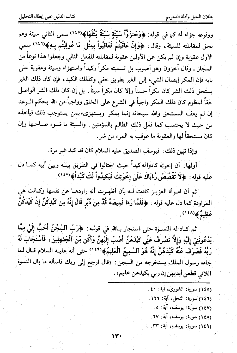 ثُمَّ كَادَ لَهُ النِّسْوَةُ حَتَّى اسْتَجَارَ بِاَللَّهِ فِي قَوْلِهِ: {رَبِّ السِّجْنُ أَحَبُّ إِلَيَّ مِمَّا يَدْعُونَنِي إِلَيْهِ وَإِلا تَصْرِفْ عَنِّي كَيْدَهُنَّ أَصْبُ إِلَيْهِنَّ وَأَكُنْ مِنَ الْجَاهِلِينَ - فَاسْتَجَابَ لَهُ رَبُّهُ فَصَرَفَ عَنْهُ كَيْدَهُنَّ إِنَّهُ هُوَ السَّمِيعُ الْعَلِيمُ} [يوسف: 33 - 34] حَتَّى إنَّهُ - عَلَيْهِ السَّلَامُ - قَالَ لَمَّا جَاءَهُ رَسُولُ الْمَلِكِ يَسْتَخْرِجُهُ مِنْ السِّجْنِ: {قَالَ ارْجِعْ إِلَى رَبِّكَ فَاسْأَلْهُ مَا بَالُ النِّسْوَةِ اللاتِي قَطَّعْنَ أَيْدِيَهُنَّ إِنَّ رَبِّي بِكَيْدِهِنَّ عَلِيمٌ} [يوسف: 50] .