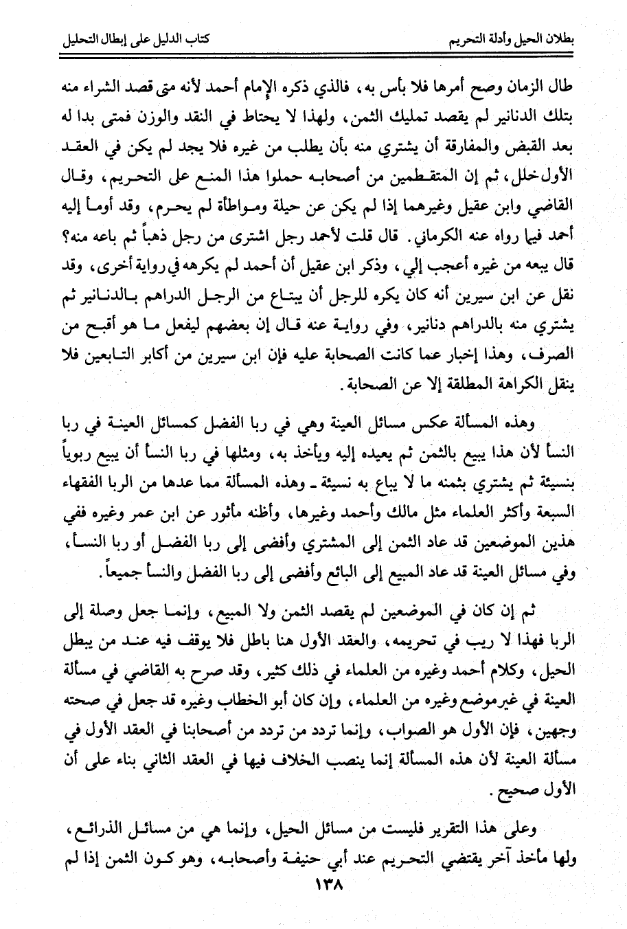 وَعَلَى هَذَا التَّقْرِيرِ فَلَيْسَتْ مِنْ مَسَائِلِ الْحِيَلِ، وَإِنَّمَا هِيَ مِنْ مَسَائِلِ الذَّرَائِعِ، وَلَهَا مَأْخَذٌ آخَرُ يَقْتَضِي التَّحْرِيمَ عِنْدَ أَبِي حَنِيفَةَ وَأَصْحَابِهِ، وَهُوَ كَوْنُ الثَّمَنِ إذَا لَمْ