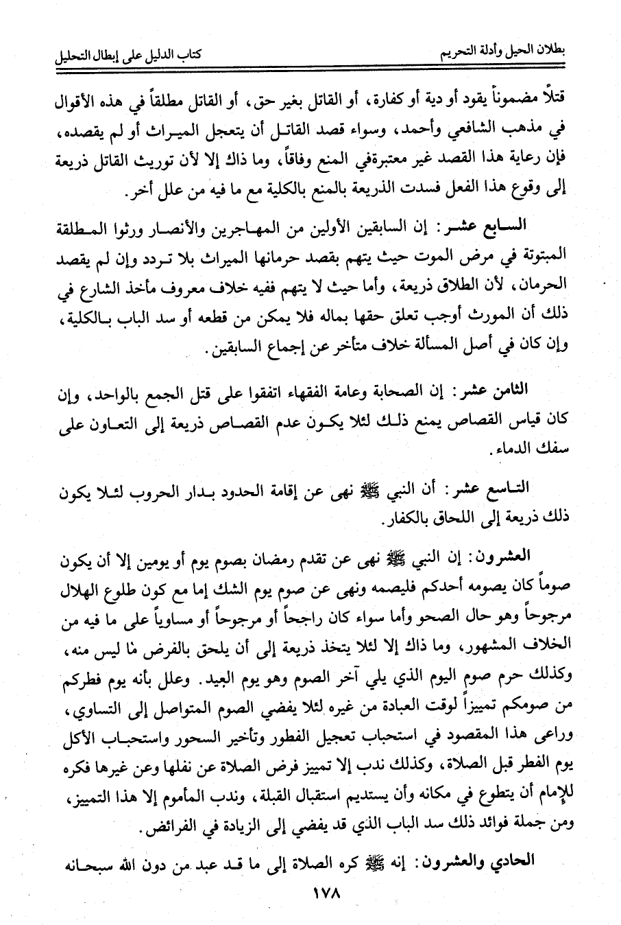 الثَّامِنَ عَشَرَ: أَنَّ الصَّحَابَةَ وَعَامَّةَ الْفُقَهَاءِ اتَّفَقُوا عَلَى قَتْلِ الْجَمْعِ بِالْوَاحِدِ، وَإِنْ كَانَ قِيَاسُ الْقِصَاصِ يَمْنَعُ ذَلِكَ لِئَلَّا يَكُونَ عَدَمُ الْقِصَاصِ ذَرِيعَةً إلَى التَّعَاوُنِ عَلَى سَفْكِ الدِّمَاءِ. التَّاسِعَ عَشَرَ: «أَنَّ النَّبِيَّ - صَلَّى اللَّهُ عَلَيْهِ وَسَلَّمَ - نَهَى عَنْ إقَامَةِ الْحُدُودِ بِدَارِ الْحُرُوبِ» لِئَلَّا يَكُونَ ذَلِكَ ذَرِيعَةً إلَى اللَّحَاقِ بِالْكُفَّارِ.