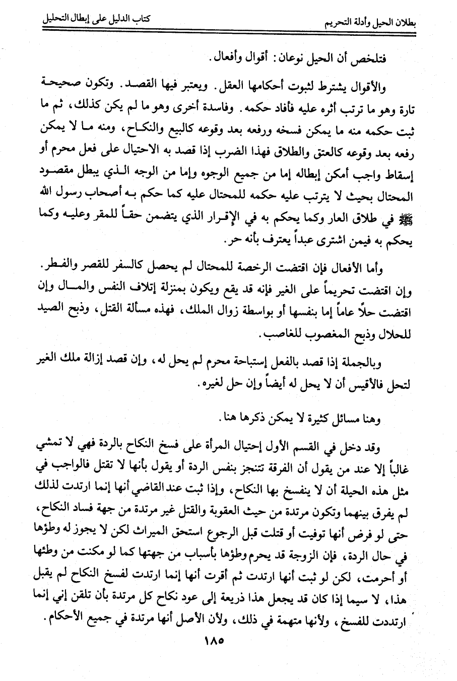 وَفَاسِدَةً أُخْرَى وَهُوَ مَا لَمْ يَكُنْ كَذَلِكَ، ثُمَّ مَا ثَبَتَ حُكْمُهُ مِنْهُ مَا يُمْكِنُ فَسْخُهُ وَرَفْعُهُ بَعْدَ وُقُوعِهِ كَالْبَيْعِ وَالنِّكَاحِ، وَمِنْهُ مَا لَا يُمْكِنُ رَفْعُهُ بَعْدَ وُقُوعِهِ كَالْعِتْقِ وَالطَّلَاقِ فَهَذَا الضَّرْبُ إذَا قَصَدَ بِهِ الِاحْتِيَالَ عَلَى فِعْلٍ مُحَرَّمٍ أَوْ إسْقَاطِ وَاجِبٍ أَمْكَنَ إبْطَالُهُ إمَّا مِنْ جَمِيعِ الْوُجُوهِ وَإِمَّا مِنْ الْوَجْهِ الَّذِي يُبْطِلُ مَقْصُودَ الْمُحْتَالِ بِحَيْثُ لَا يَتَرَتَّبُ عَلَيْهِ حُكْمُهُ لِلْمُحْتَالِ عَلَيْهِ كَمَا حَكَمَ بِهِ أَصْحَابُ رَسُولِ اللَّهِ - صَلَّى اللَّهُ عَلَيْهِ وَسَلَّمَ - فِي طَلَاقِ الْعَارِ وَكَمَا يَحْكُمُ بِهِ فِي الْإِقْرَارِ الَّذِي يَتَضَمَّنُ حَقًّا لِلْمُقِرِّ وَعَلَيْهِ وَكَمَا يَحْكُمُ بِهِ فِيمَنْ اشْتَرَى عَبْدًا يَعْتَرِفُ بِأَنَّهُ حُرٌّ.