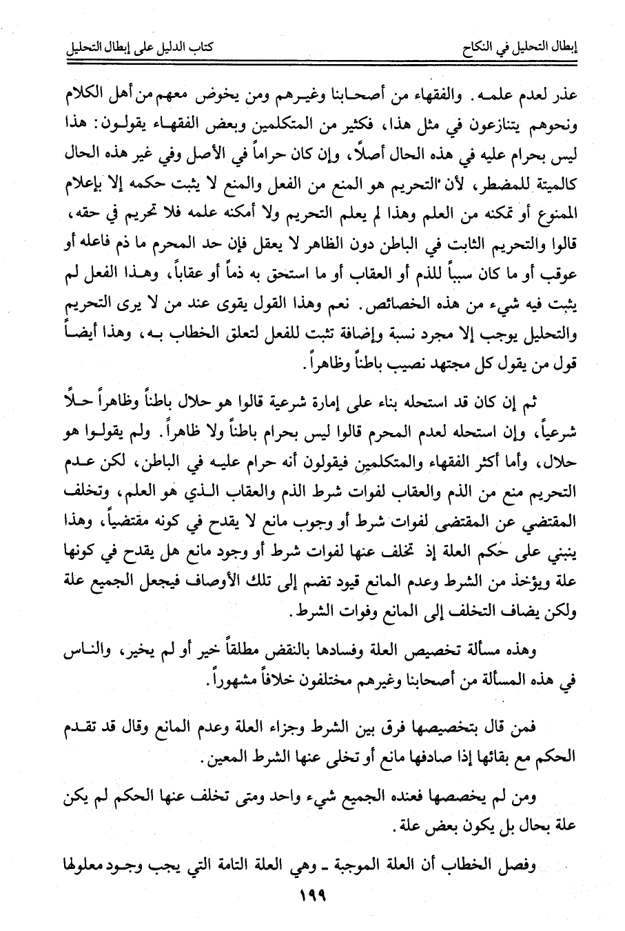 وَلَمْ يَقُولُوا هُوَ حَلَالٌ، وَأَمَّا أَكْثَرُ الْفُقَهَاءِ وَالْمُتَكَلِّمِينَ فَيَقُولُونَ إنَّهُ حَرَامٌ عَلَيْهِ فِي الْبَاطِنِ، لَكِنَّ عَدَمَ التَّحْرِيمِ مَنَعَ مِنْ الذَّمِّ وَالْعِقَابِ لِفَوَاتِ شَرْطِ الذَّمِّ وَالْعِقَابِ الَّذِي هُوَ الْعِلْمُ، وَتَخَلُّفِ الْمُقْتَضِي عَنْ الْمُقْتَضَى لِفَوَاتِ شَرْطٍ أَوْ وُجُودِ مَانِعٍ لَا يَقْدَحُ فِي كَوْنِهِ مُقْتَضِيًا. وَهَذَا يَنْبَنِي عَلَى حُكْمِ الْعِلَّةِ إذَا تَخَلَّفَ عَنْهَا لِفَوَاتِ شَرْطٍ أَوْ وُجُودِ مَانِعٍ هَلْ يَقْدَحُ فِي كَوْنِهَا عِلَّةً وَيُؤْخَذُ مِنْ الشَّرْطِ وَعَدَمِ الْمَانِعِ قُيُودٌ تُضَمُّ إلَى تِلْكَ الْأَوْصَافِ فَيَجْعَلُ الْجَمِيعَ عِلَّةً وَلَكِنْ يُضَافُ التَّخَلُّفُ إلَى الْمَانِعِ وَفَوَاتِ الشَّرْطِ.