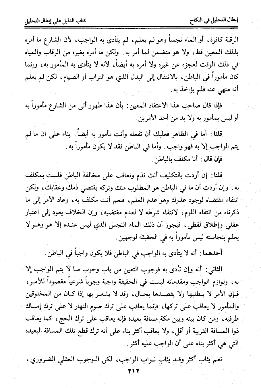 فَإِذَا قَالَ صَاحِبُ هَذَا الِاعْتِقَادِ الْمُعَيَّنِ: بِأَنَّ هَذَا طَهُورٌ أَتَى مِنْ الشَّارِعِ مَأْمُورًا بِهِ أَوْ لَيْسَ بِمَأْمُورٍ بِهِ وَلَا بُدَّ مِنْ أَحَدِ الْأَمْرَيْنِ. قُلْنَا: أَمَّا فِي الظَّاهِرِ فَعَلَيْك أَنْ تَفْعَلَهُ وَأَنْتَ مَأْمُورٌ بِهِ أَيْضًا. بِنَاءً عَلَى أَنَّ مَا لَمْ يَتِمُّ الْوَاجِبُ إلَّا بِهِ فَهُوَ وَاجِبٌ، وَأَمَّا فِي الْبَاطِنِ فَقَدْ لَا يَكُونُ مَأْمُورًا بِهِ. فَإِنْ قَالَ: أَنَا مُكَلَّفٌ بِالْبَاطِنِ، قُلْنَا: إنْ أَرَدْت بِالتَّكْلِيفِ أَنَّك تُذَمُّ وَتُعَاقَبُ عَلَى مُخَالَفَةِ الْبَاطِنِ فَلَسْت بِمُكَلَّفٍ بِهِ.