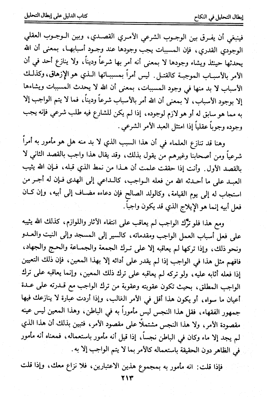 وَهُنَا قَدْ تَنَازَعَ الْعُلَمَاءُ فِي أَنَّ هَذَا السَّبَبَ الَّذِي لَا بُدَّ مِنْهُ هَلْ هُوَ مَأْمُورٌ بِهِ أَمْرًا شَرْعِيًّا وَمِنْ أَصْحَابِنَا وَغَيْرِهِمْ مَنْ يَقُولُ بِذَلِكَ، وَقَدْ يُقَالُ هَذَا وَاجِبٌ بِالْقَصْدِ الثَّانِي لَا بِالْقَصْدِ الْأَوَّلِ، وَأَنْتَ إذَا حَقَّقْت عَلِمْت أَنَّ هَذَا مِنْ نَمَطِ الَّذِي قَبْلَهُ، فَإِنَّ اللَّهَ يُثِيبُ الْعَبْدَ عَلَى مَا أَحْدَثَهُ اللَّهُ مِنْ فِعْلِهِ الْوَاجِبِ، كَالدَّاعِي إلَى الْهُدَى فَإِنَّ لَهُ أَجْرَ مَنْ اسْتَجَابَ لَهُ إلَى يَوْمِ الْقِيَامَةِ، وَكَالْوَلَدِ الصَّالِحِ فَإِنَّ دُعَاءَهُ مُضَافٌ إلَى أَبِيهِ، وَإِنْ كَانَ فِعْلُ أَبِيهِ إنَّمَا هُوَ الْإِيلَاجُ الَّذِي قَدْ يَكُونُ وَاجِبًا، وَمَعَ هَذَا فَلَوْ تَرَكَ الْوَاجِبَ لَمْ يُعَاقَبْ عَلَى انْتِفَاءِ الْآثَارِ وَاللَّوَازِمِ، كَذَلِكَ اللَّهُ يُثِيبُهُ عَلَى فِعْلِ أَسْبَابِ الْعَمَلِ الْوَاجِبِ وَمُقَدِّمَاتِهِ، كَالسَّيْرِ إلَى الْمَسْجِدِ وَإِلَى الْبَيْتِ وَالْعَدُوِّ وَنَحْوِ ذَلِكَ، وَإِذَا تَرَكَهَا لَمْ يُعَاقِبْهُ إلَّا عَلَى تَرْكِ الْجُمُعَةِ وَالْجَمَاعَةِ وَالْحَجِّ وَالْجِهَادِ، فَافْهَمْ مِثْلَ هَذَا فِي الْوَاجِبِ إذَا لَمْ يَقْدِرْ عَلَى أَدَائِهِ إلَّا بِهَذَا الْمُعَيَّنِ، فَإِنَّ ذَلِكَ التَّعْيِينَ إذَا فَعَلَهُ أَثَابَهُ عَلَيْهِ، وَلَوْ تَرَكَهُ لَمْ يُعَاقِبْهُ عَلَى تَرْكِ ذَلِكَ الْمُعَيَّنِ، وَإِنَّمَا يُعَاقِبُهُ عَلَى تَرْكِ الْوَاجِبِ الْمُطْلَقِ، بِحَيْثُ تَكُونُ عُقُوبَتُهُ وَعُقُوبَةُ مَنْ تَرَكَ الْوَاجِبَ مَعَ قُدْرَتِهِ عَلَيْهِ عِدَّةَ أَعْيَانٍ مِمَّا سِوَاهُ، أَوْ يَكُونُ هَذَا أَقَلَّ فِي الْأَمْرِ الْغَالِبِ، وَإِذَا أَرَدْت عِبَارَةً لَا يُنَازِعُك فِيهَا جُمْهُورُ الْفُقَهَاءِ، فَقُلْ هَذَا النَّجَسُ لَيْسَ مَأْمُورًا بِهِ فِي الْبَاطِنِ، وَهَذَا الْمُعَيَّنُ لَيْسَ عَيْنُهُ مَقْصُودَةَ الْأَمْرِ، وَلَا هَذَا النَّجَسُ مُشْتَمِلًا عَلَى مَقْصُودِ الْأَمْرِ، فَتَبَيَّنَ بِذَلِكَ أَنَّ هَذَا الَّذِي لَمْ يَجِدْ إلَّا مَاءً وَكَانَ فِي الْبَاطِنِ نَجَسًا، إذَا قِيلَ: إنَّهُ مَأْمُورٌ بِاسْتِعْمَالِهِ، فَمَعْنَاهُ أَنَّهُ مَأْمُورٌ فِي الظَّاهِرِ دُونَ الْحَقِيقَةِ بِاسْتِعْمَالِهِ كَالْأَمْرِ بِمَا لَا يَتِمُّ الْوَاجِبُ إلَّا بِهِ.