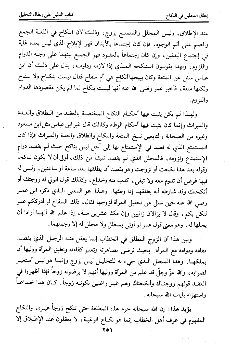 وَلِهَذَا لَمْ يَكُنْ يَثْبُتُ فِيهَا أَحْكَامُ النِّكَاحِ الْمُخْتَصَّةِ بِالْعَقْدِ مِنْ الطَّلَاقِ وَالْعِدَّةِ وَالْمِيرَاثِ وَإِنَّمَا كَانَ يَثْبُتُ فِيهَا أَحْكَامُ الْوَطْءِ وَكَذَلِكَ قَالَ غَيْرُ ابْنِ عَبَّاسٍ مِثْلُ ابْنِ مَسْعُودٍ وَغَيْرِهِ مِنْ الصَّحَابَةِ وَالتَّابِعِينَ نَسَخَ الْمُتْعَةَ النِّكَاحُ وَالطَّلَاقُ وَالْعِدَّةُ وَالْمِيرَاثُ فَإِذَا كَانَ الْمُسْتَمْتِعُ الَّذِي لَهُ قَصْدٌ فِي الِاسْتِمْتَاعِ بِهَا إلَى أَجَلٍ لَيْسَ بِنَاكِحٍ حَيْثُ لَمْ يَقْصِدْ دَوَامَ الِاسْتِمْتَاعِ وَلُزُومَهُ، فَالْمُحَلِّلُ الَّذِي لَمْ يَقْصِدْ شَيْئًا مِنْ ذَلِكَ، أَوْلَى أَنْ لَا يَكُونَ نَاكِحًا وَقَوْلُهُ بَعْدَ هَذَا نَكَحْت أَوْ تَزَوَّجْت وَهُوَ يَقْصِدُ أَنْ يُطَلِّقَهَا بَعْدَ سَاعَةٍ أَوْ سَاعَتَيْنِ، وَلَيْسَ لَهُ فِيهَا غَرَضٌ أَنْ تَدُومَ مَعَهُ وَلَا تَبْقَى، كَذِبٌ مِنْهُ وَخِدَاعٌ، وَكَذَلِكَ قَوْلُ الْوَلِيِّ لَهُ زَوَّجْتُك أَوْ أَنْكَحْتُك وَقَدْ شَارَطَهُ أَنَّهُ يُطَلِّقُهَا إذَا وَطِئَهَا، وَهَذَا هُوَ الْمَعْنَى الَّذِي ذَكَرَهُ ابْنُ عُمَرَ - رَضِيَ اللَّهُ عَنْهُ - حِينَ سُئِلَ عَنْ تَحْلِيلِ الْمَرْأَةِ لِزَوْجِهَا فَقَالَ، ذَلِكَ السِّفَاحُ لَوْ أَدْرَكَكُمْ عُمَرُ لَنَكَّلَ بِكُمْ، وَقَالَ لَا يَزَالَانِ زَانِيَيْنِ وَإِنْ مَكَثَا عِشْرِينَ سَنَةً، إذَا عَلِمَ اللَّهُ أَنَّهُمَا أَرَادَا أَنْ يُحِلَّهَا لَهُ، وَهُوَ مَعْنَى قَوْلِ عُمَرَ لَوْ أُوتَى بِمُحَلِّلٍ وَلَا مُحَلَّلٍ لَهُ إلَّا رَجَمْتهمَا، وَبَيَّنَ هَذَا أَنَّ الزَّوْجَ الْمُطَلِّقَ فِي الْخِطَابِ إنَّمَا يُعْقَلُ مِنْهُ الرَّجُلُ الَّذِي يَقْصِدُ مَقَامَهُ وَدَوَامَهُ مَعَ الْمَرْأَةِ، بِحَيْثُ نَرْضَى مُصَاهَرَتَهُ وَتُعْتَبَرُ كَفَاءَتُهُ وَتُطِيقُ الْمَرْأَةُ وَوَلِيُّهَا أَنْ يَمْلِكَهَا، وَهَذَا الْمُحَلِّلُ الَّذِي جِيءَ بِهِ لِلتَّحْلِيلِ لَيْسَ بِزَوْجٍ وَإِنَّمَا هُوَ تَيْسٌ اُسْتُعِيرَ لِضِرَابِهِ، وَاَللَّهُ عَزَّ وَجَلَّ قَدْ عَلِمَ مِنْ الْمَرْأَةِ وَوَلِيِّهَا أَنَّهُمْ لَا يَرْضَوْنَهُ زَوْجًا فَإِذَا أَظْهَرُوا فِي الْعَقْدِ قَوْلَهُمْ زَوَّجْنَاك وَأَنْكَحْنَاك وَهُمْ غَيْرُ رَاضِينَ بِكَوْنِهِ زَوْجًا. كَانَ هَذَا خِدَاعًا وَاسْتِهْزَاءً بِآيَاتِ اللَّهِ سُبْحَانَهُ.
