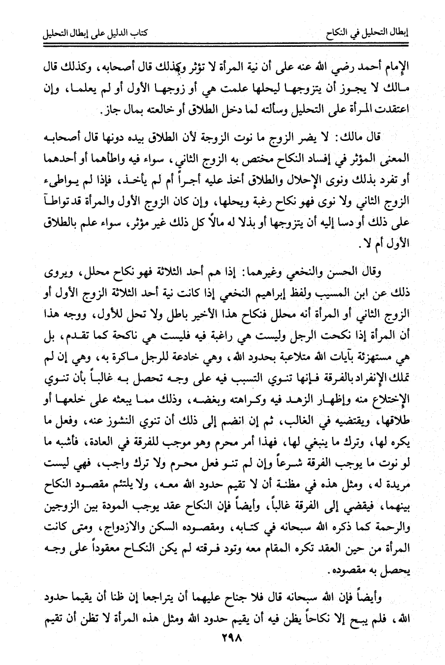 وَأَيْضًا فَإِنَّ اللَّهَ سُبْحَانَهُ قَالَ {فَلا جُنَاحَ عَلَيْهِمَا أَنْ يَتَرَاجَعَا إِنْ ظَنَّا أَنْ يُقِيمَا حُدُودَ اللَّهِ} [البقرة: 230] فَلَمْ يُبِحْ إلَّا نِكَاحًا يُظَنُّ فِيهِ أَنْ يُقِيمَ حُدُودَ اللَّهِ وَمِثْلُ هَذِهِ الْمَرْأَةِ لَا تَظُنُّ أَنْ تُقِيمَ