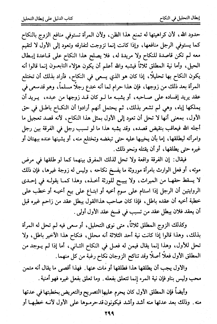 حُدُودَ اللَّهِ؛ لِأَنَّ كَرَاهِيَتَهَا لَهُ تَمْنَعُ هَذَا الظَّنَّ، وَلِأَنَّ الْمَرْأَةَ تَسْتَوْفِي مَنَافِعَ الزَّوْجِ بِالنِّكَاحِ كَمَا يَسْتَوْفِي الرَّجُلُ مَنَافِعَهَا، وَإِذَا كَانَتْ إنَّمَا تَزَوَّجَتْ لِتُفَارِقَهُ وَتَعُودَ إلَى الْأَوَّلِ لَا لِتُقِيمَ مَعَهُ لَمْ تَكُنْ قَاصِدَةً لِلنِّكَاحِ وَلَا مُرِيدَةً لَهُ، فَلَا يَصْلُحُ هَذَا النِّكَاحُ عَلَى قَاعِدَةِ إبْطَالِ الْحِيَلِ، وَأَمَّا نِيَّةُ الْمُطَلِّقِ ثَلَاثًا فَيُشْبِهُ وَاَللَّهُ أَعْلَمُ أَنْ يَكُونَ هَؤُلَاءِ التَّابِعُونَ إنَّمَا قَالُوا إنَّهُ يَكُونُ النِّكَاحُ بِهَا تَحْلِيلًا، إذَا كَانَ هُوَ الَّذِي يَسْعَى فِي النِّكَاحِ، فَأَرَادَ بِذَلِكَ أَنْ تَخْتَلِعَ الْمَرْأَةُ بَعْدَ ذَلِكَ مِنْ زَوْجِهَا، فَإِنَّ هَذَا حَرَامٌ لِمَا أَنَّهُ خَدَعَ رَجُلًا مُسْلِمًا، وَهُوَ قَدْ سَعَى فِي عَقْدٍ يُرِيدُ إفْسَادَهُ عَلَى صَاحِبِهِ، أَوْ يُشْبِهُ مَا لَوْ كَانَ قَدْ زَوَّجَهَا مِنْ عَبْدِهِ، يُرِيدُ أَنْ يُمَلِّكَهَا إيَّاهُ، وَهِيَ لَمْ تَشْعُرْ بِذَلِكَ، ثُمَّ يُحْتَمَلُ أَنَّهُمْ أَرَادُوا أَنَّ النِّكَاحَ بَاطِلٌ فِي حَقِّ الْأَوَّلِ، بِمَعْنَى أَنَّهَا لَا تَحِلُّ أَنْ تَعُودَ إلَى الْأَوَّلِ بِمِثْلِ هَذَا النِّكَاحِ؛ لِأَنَّهُ قَصَدَ تَعْجِيلَ مَا أَجَّلَهُ اللَّهُ فَيُعَاقَبُ بِنَقِيضِ قَصْدِهِ، وَقَدْ يُشْبِهُ هَذَا مَا لَوْ تَسَبَّبَ رَجُلٌ فِي الْفُرْقَةِ بَيْنَ رَجُلٍ وَامْرَأَتِهِ لِيُطَلِّقَهَا، إمَّا بِأَنْ يُخَبِّبَهَا عَلَيْهِ حَتَّى تَبْغُضَهُ وَتَخْتَلِعَ مِنْهُ، أَوْ يَشِينَهَا عِنْدَهُ بِبُهْتَانٍ أَوْ غَيْرِهِ حَتَّى يُطَلِّقَهَا، أَوْ أَنْ يَقْتُلَهُ وَنَحْوَ ذَلِكَ.