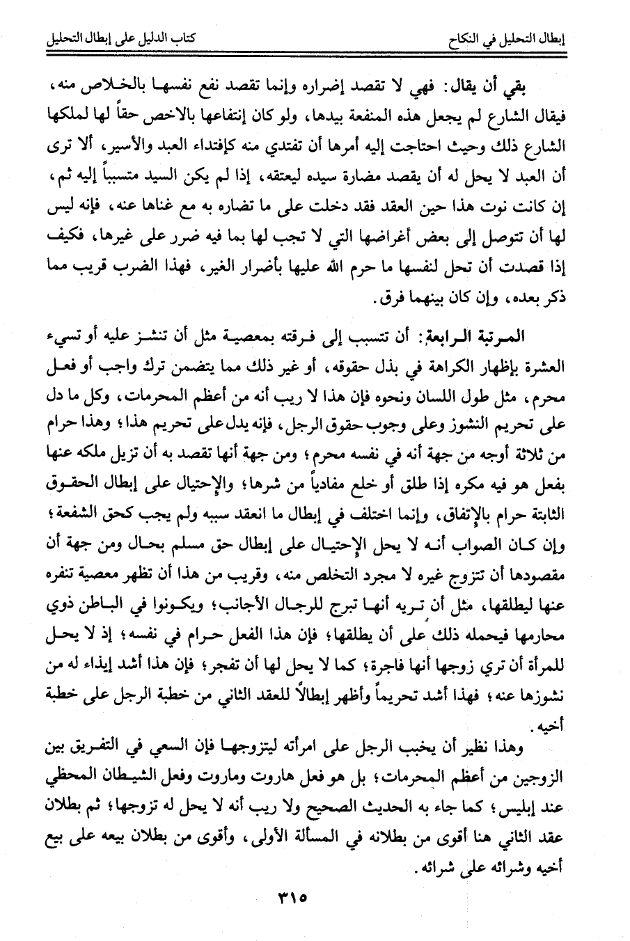 وَهَذَا نَظِيرُ أَنْ يُخَبِّبَ الرَّجُلُ عَلَى امْرَأَتِهِ لِيَتَزَوَّجَهَا فَإِنَّ السَّعْيَ فِي التَّفْرِيقِ بَيْنَ الزَّوْجَيْنِ مِنْ أَعْظَمِ الْمُحَرَّمَاتِ؛ بَلْ هُوَ فِعْلُ هَارُوتَ وَمَارُوتَ وَفِعْلُ الشَّيْطَانِ الْمَحْظِيِّ عِنْدَ إبْلِيسَ؛ كَمَا جَاءَ بِهِ الْحَدِيثُ الصَّحِيحُ.