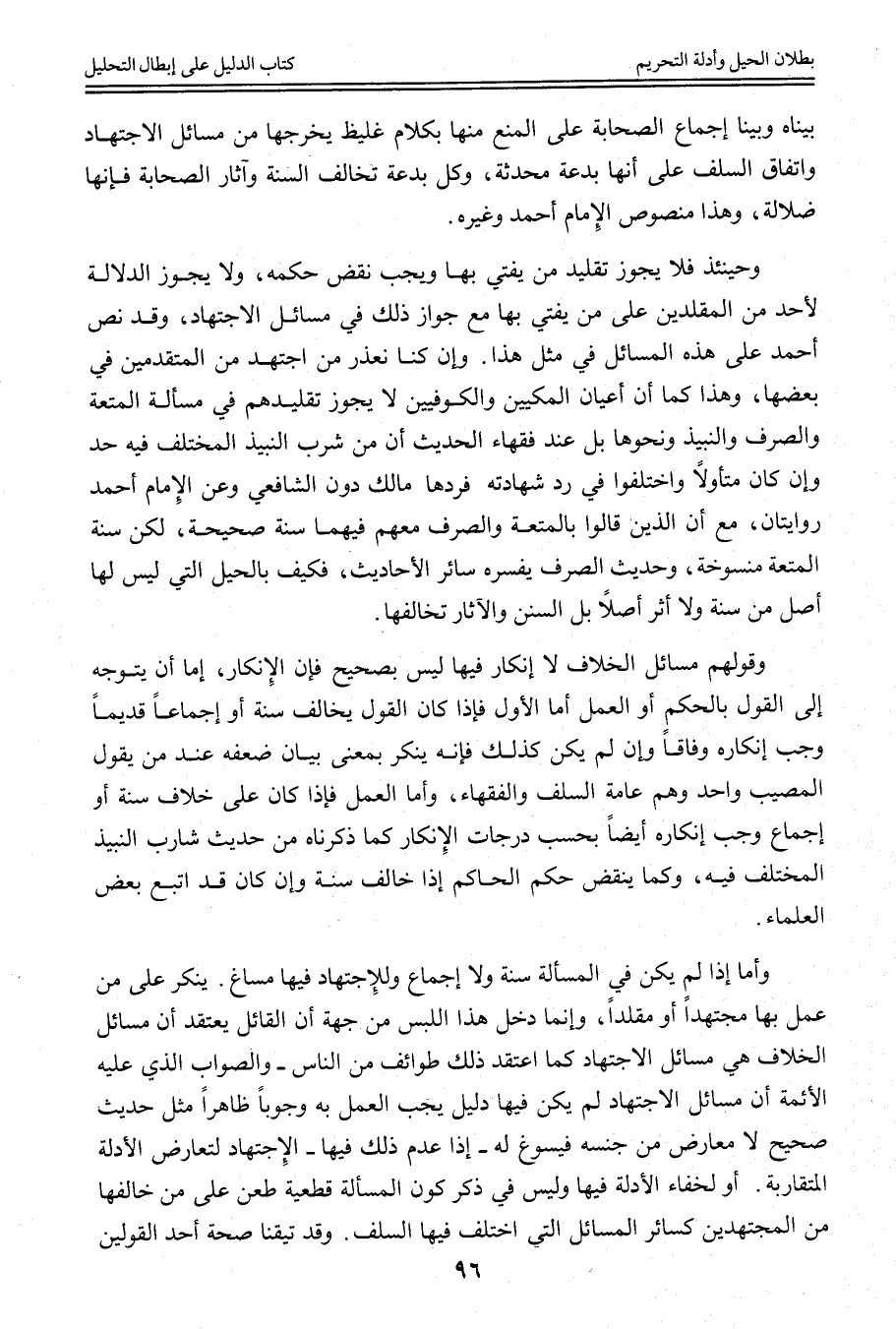 وَإِنْ كُنَّا نَعْذُرُ مَنْ اجْتَهَدَ مِنْ الْمُتَقَدِّمِينَ فِي بَعْضِهَا، وَهَذَا كَمَا أَنَّ أَعْيَانَ الْمَكِّيِّينَ وَالْكُوفِيِّينَ لَا يَجُوزُ تَقْلِيدُهُمْ فِي مَسْأَلَةِ الْمُتْعَةِ وَالصَّرْفِ وَالنَّبِيذِ وَنَحْوِهَا بَلْ عِنْدَ فُقَهَاءِ الْحَدِيثِ أَنَّ مَنْ شَرِبَ النَّبِيذَ الْمُخْتَلَفَ فِيهِ حُدَّ، وَإِنْ كَانَ مُتَأَوِّلًا وَاخْتَلَفُوا فِي رَدِّ شَهَادَتِهِ فَرَدَّهَا مَالِكٌ دُونَ الشَّافِعِيِّ وَعَنْ الْإِمَامِ أَحْمَدَ رِوَايَتَانِ، مَعَ أَنَّ الَّذِينَ قَالُوا بِالْمُتْعَةِ وَالصَّرْفِ مَعَهُمْ فِيهِمَا سُنَّةٌ صَحِيحَةٌ، لَكِنَّ سُنَّةَ الْمُتْعَةِ مَنْسُوخَةٌ، وَحَدِيثُ الصَّرْفِ يُفَسِّرُهُ سَائِرُ الْأَحَادِيثِ، فَكَيْفَ بِالْحِيَلِ الَّتِي لَيْسَ لَهَا أَصْلٌ مِنْ سُنَّةٍ وَلَا أَثَرٍ أَصْلًا بَلْ السُّنَنُ وَالْآثَارُ تُخَالِفُهَا.