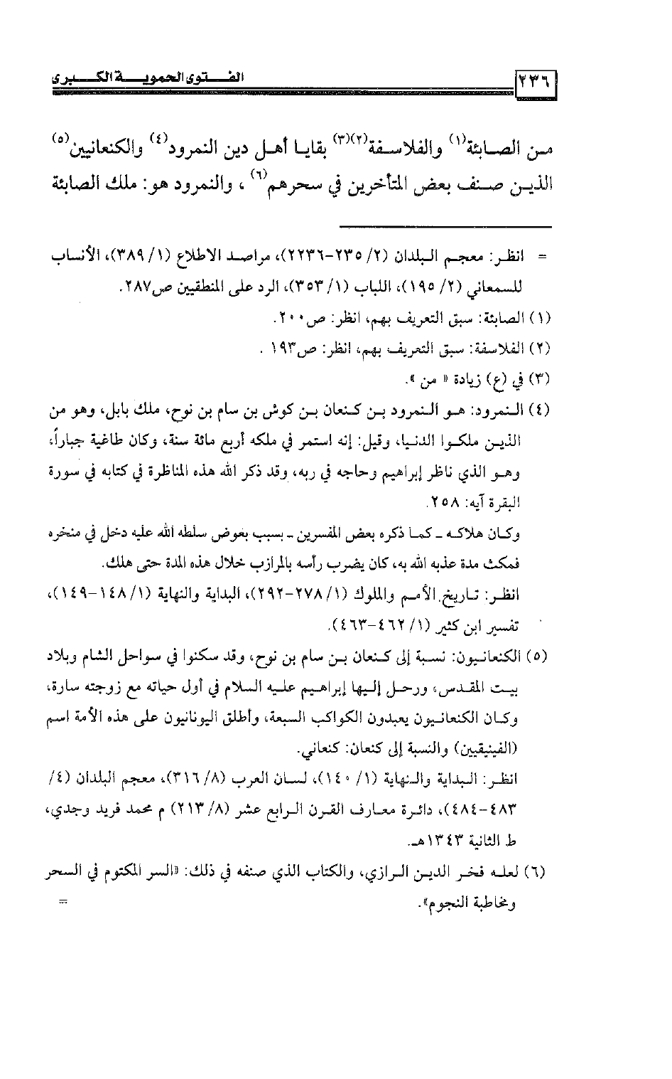 من الصابئة والفلاسفة بقايا أهل دين النمرود والكنعانيين الذين صنف بعض المتأخرين في سحرهم، والنمرود هو: ملك الصابئة