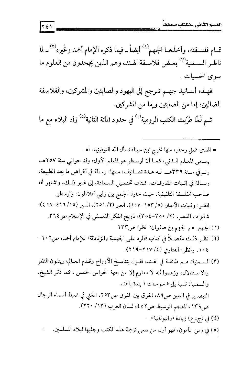 فهذه أسانيد جهم ترجع إلى اليهود والصابئين والمشركين، والفلاسفة الضالين؛ إما من الصابئين وإما من المشركين.