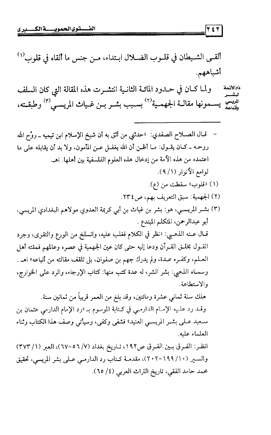 ولما كان في حدود المائة الثانية انتشرت هذه المقالة التي كان السلف يسمونها مقالة الجهمية بسبب بشر بن غياث المريسي وطبقته،