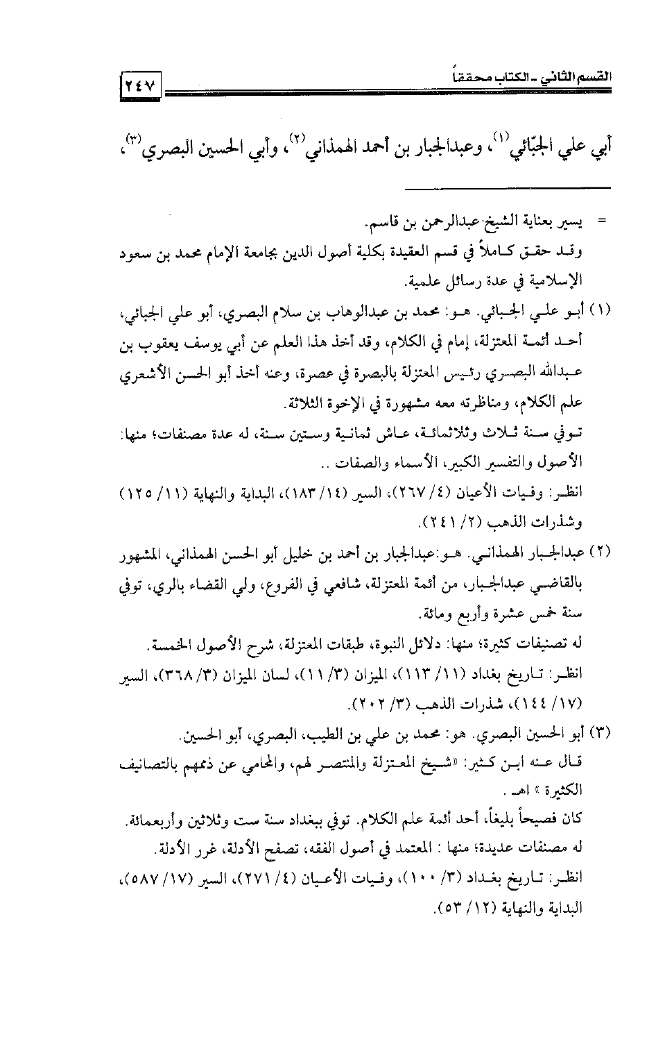 أبي علي الجبّائي، وعبد الجبار بن أحمد الهمذاني، وأبي الحسين البصري،
