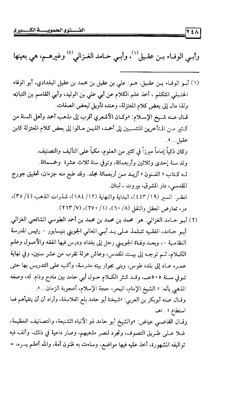 وأبي الوفاء بن عقيل، وأبي حامد الغزالي وغيرهم، هي بعينها