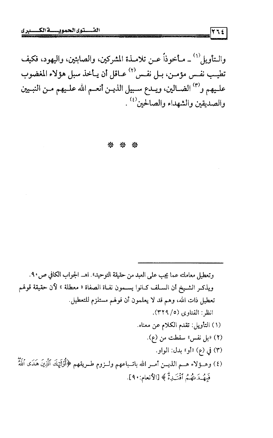 والتأويل ـ مأخوذًا عن تلامذة المشركين، والصابئين، واليهود، فكيف تطيب نفس مؤمن، بل نفس عاقل أن يأخذ سبل هؤلاء المغضوب عليهم والضالين، ويدع سبيل الذين أنعم الله عليهم من النبيين والصديقين والشهداء والصالحين.