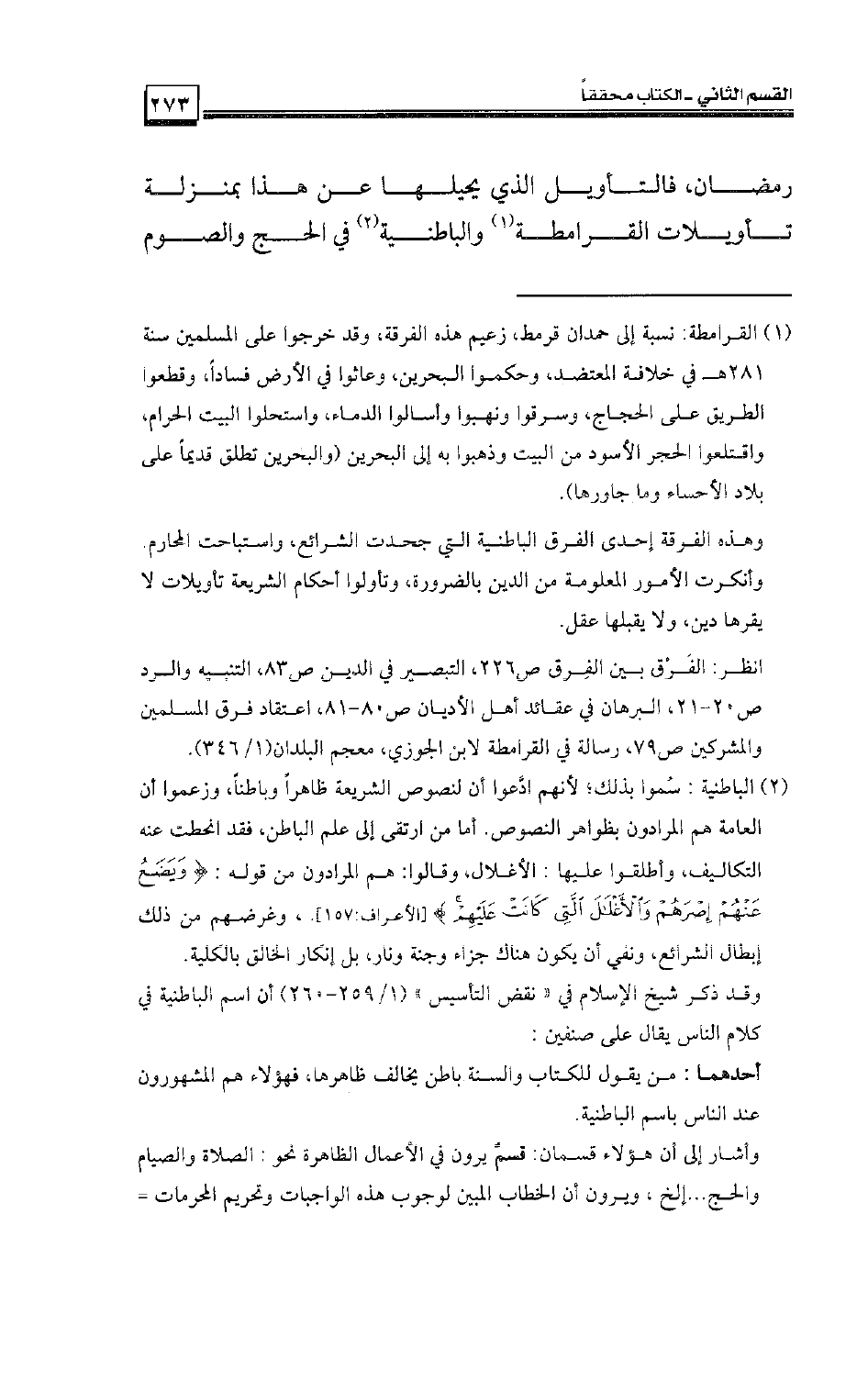 رمضان، فالتأويل الذي يحيلها عن هذا بمنزلة تأويلات القرامطة والباطنية في الحج والصوم