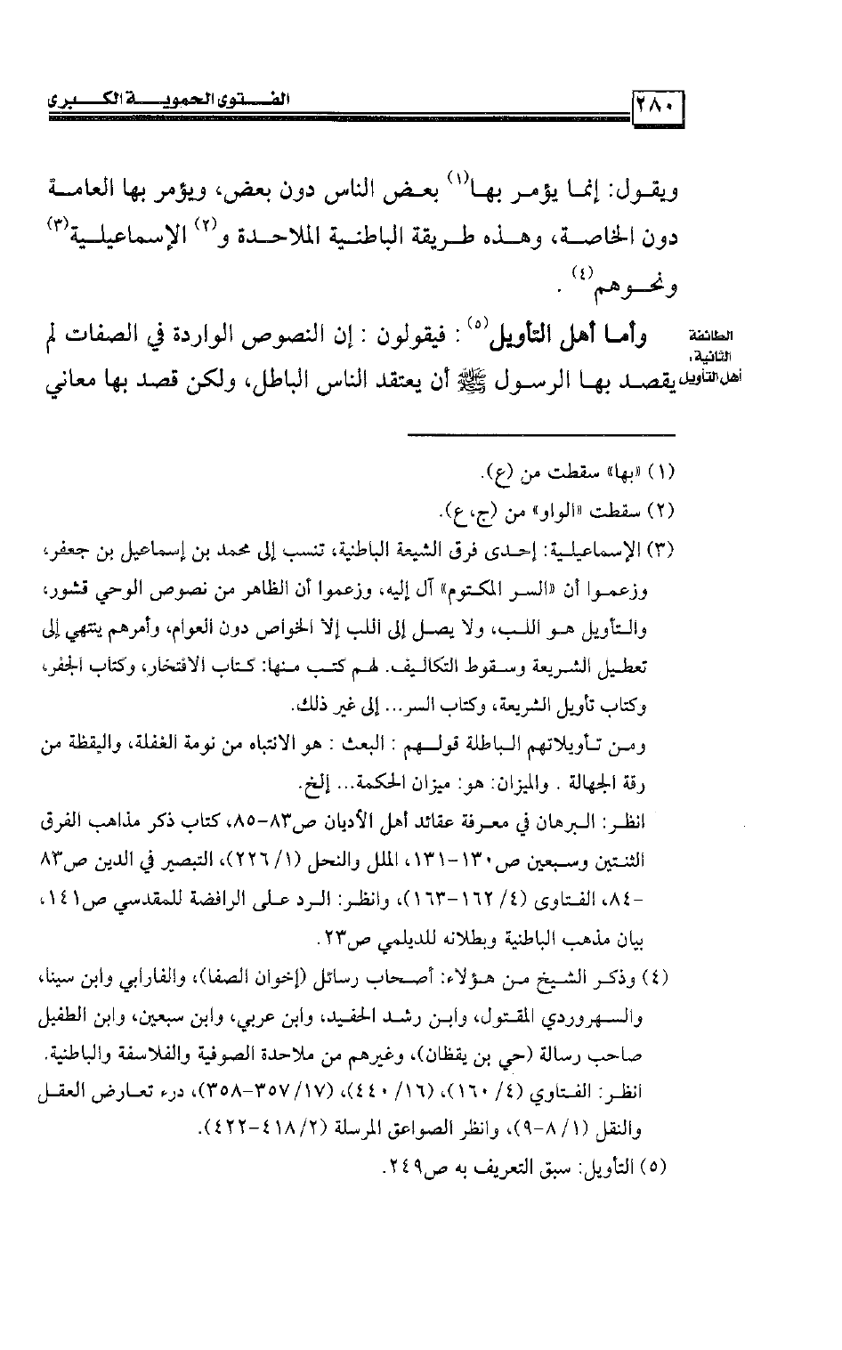 ويقول: إنما يؤمر بها بعض الناس دون بعض، ويؤمر بها العامة دون الخاصة، وهذه طريقة الباطنية الملاحدة والإسماعيلية ونحوهم.