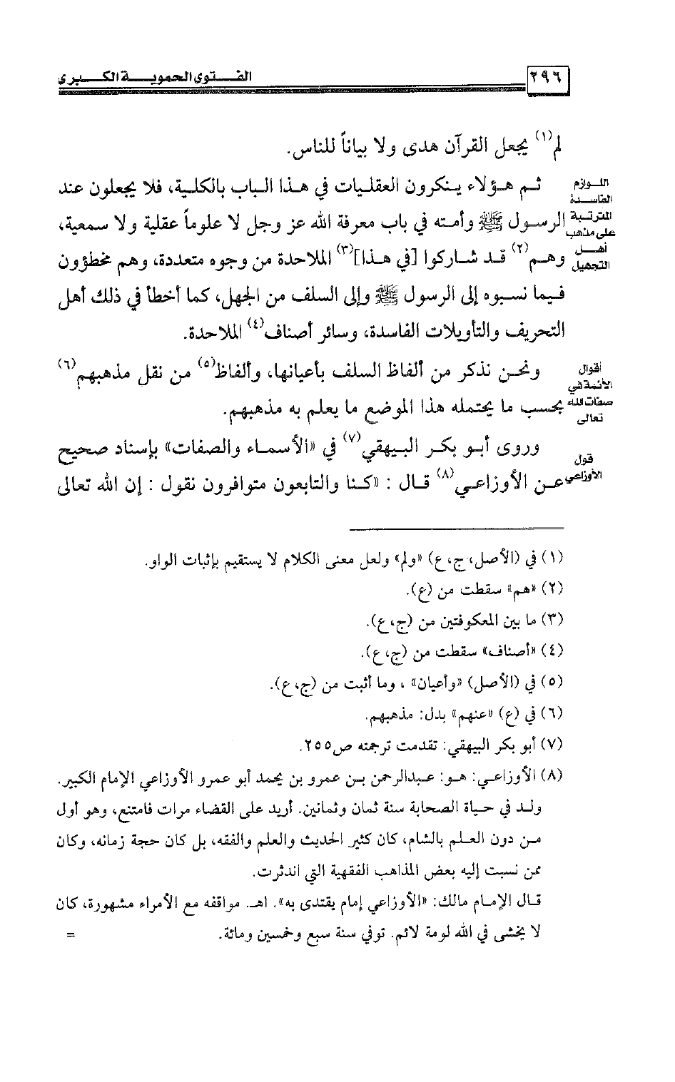 روى أبو بكر البيهقي في «الأسماء والصفات» بإسناد صحيح عن الأوزاعي قال: «كنا والتابعون متوافرون نقول: إن الله تعالى