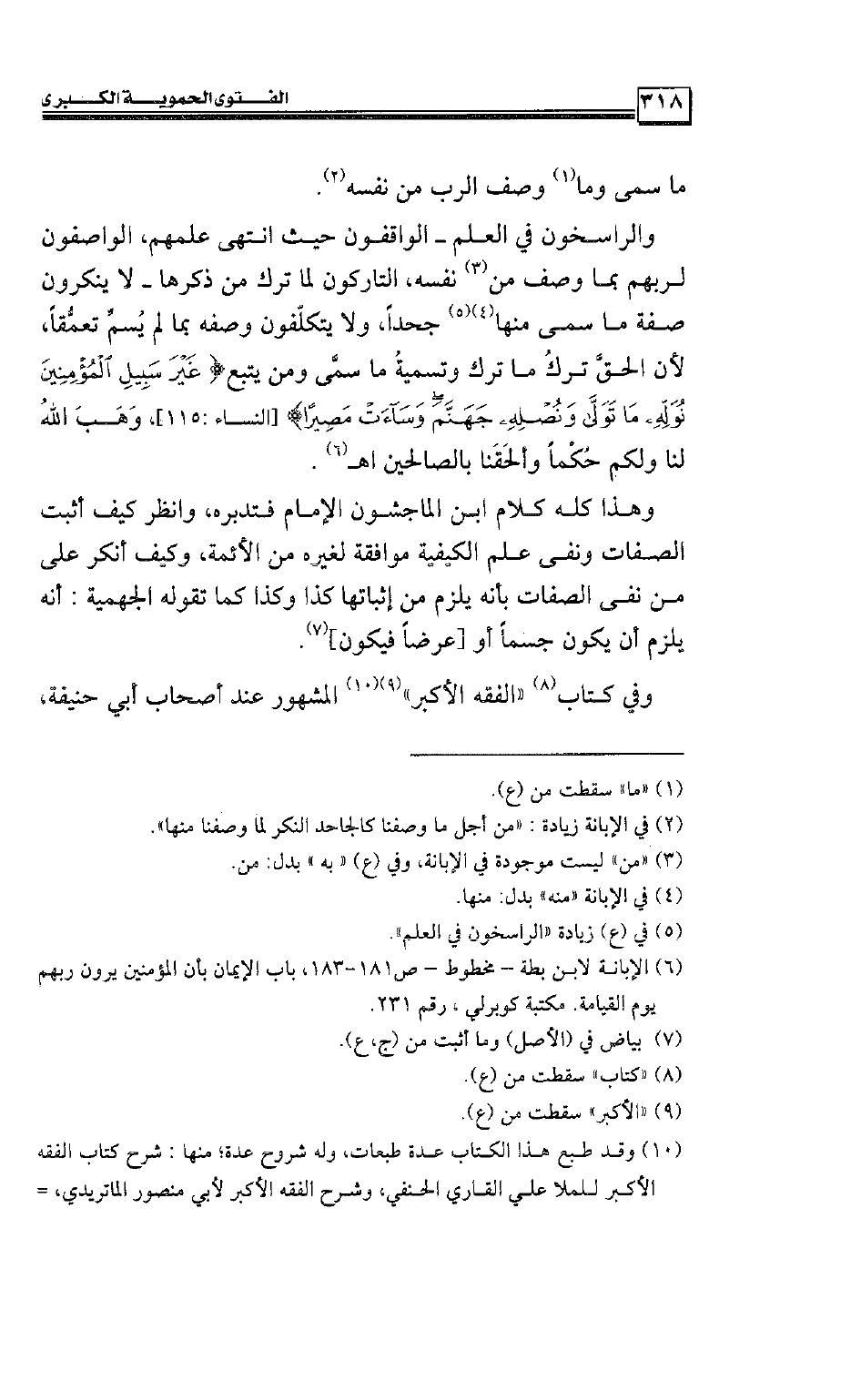 وفي كتاب «الفقه الأكبر» المشهور عند أصحاب أبي حنيفة،