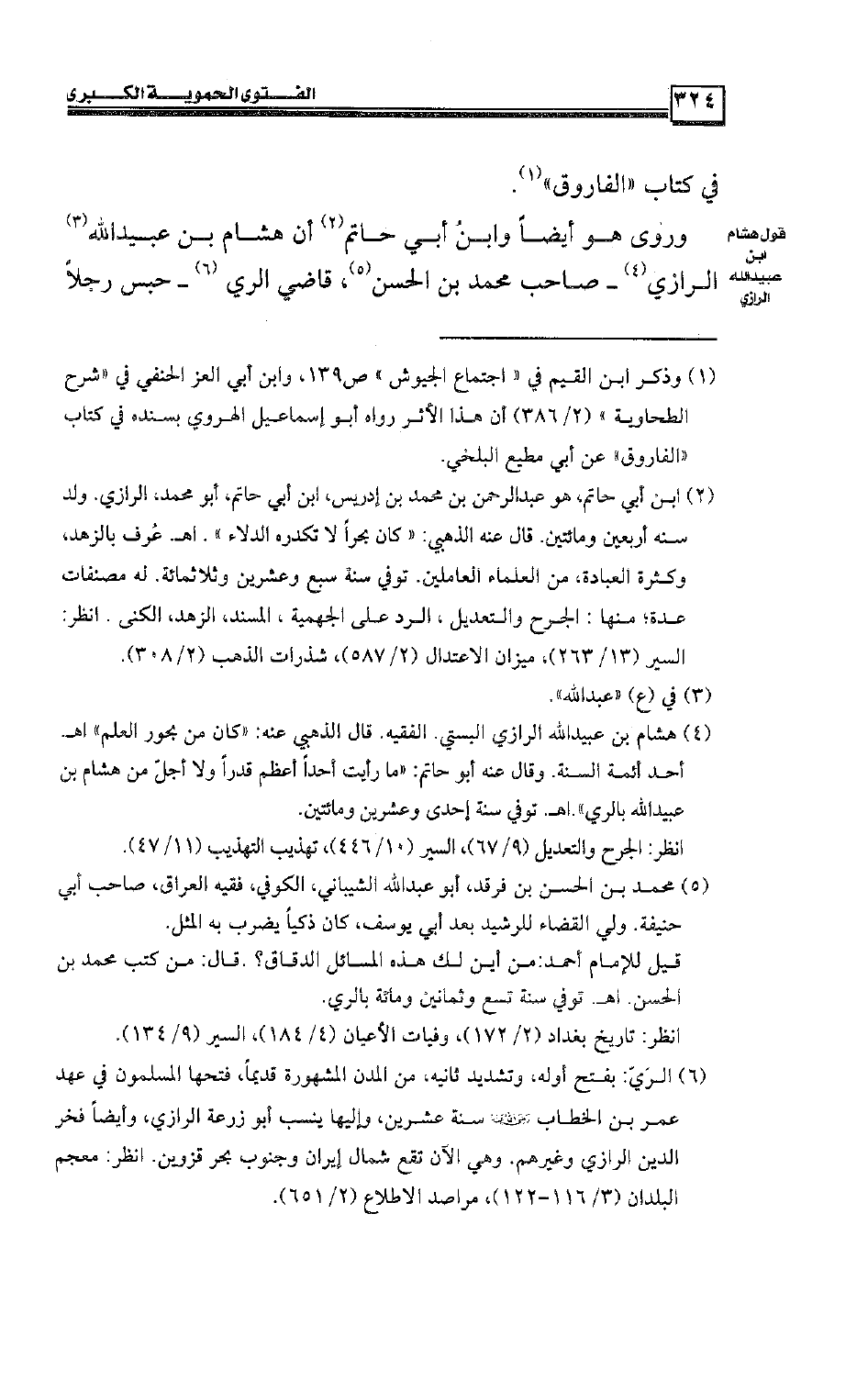 وروى هو أيضًا وابنُ أبي حاتم أن هشام بن عبيد الله الرازي ـ صاحب محمد بن الحسن، قاضى الرَّي ـ حبس رجلاً
