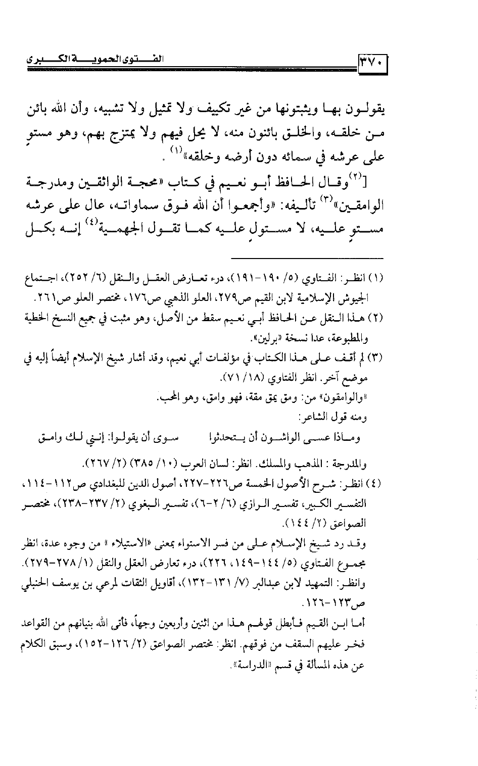 [وقال الحافظ أبو نعيم في كتاب «محجة الواثقين ومدرجة الوامقين» تأليفه: «وأجمعوا أن الله فوق سماواته، عالٍ على عرشه مستوٍ عليه، لا مستولٍ عليه كما تقول الجهمية إنه بكل