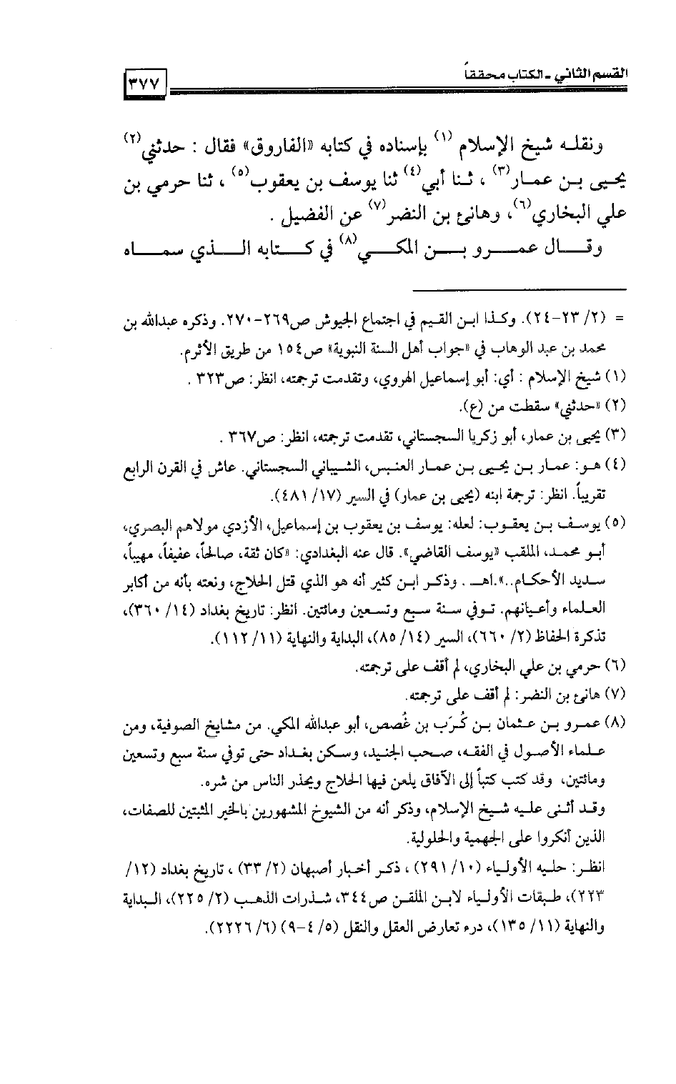 ونقله شيخ الإسلام بإسناده في كتابه «الفاروق» فقال: حدثني يحيي بن عمار، ثنا أبي ثنا يوسف بن يعقوب، ثنا حَرَميّ بن على البخاري، وهانئ بن النضر عن الفضيل.