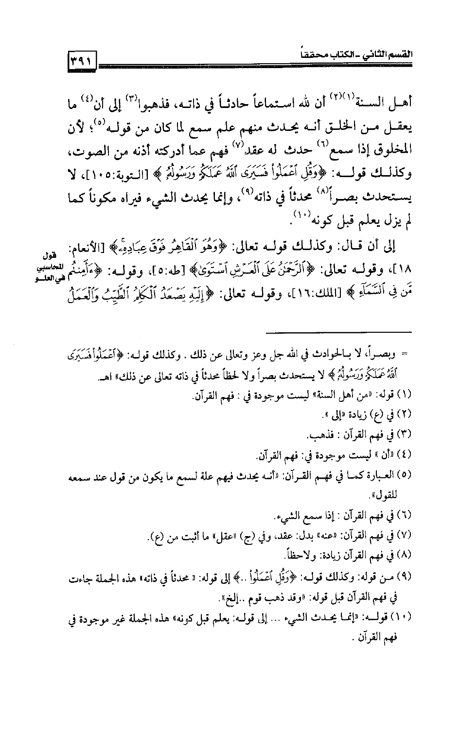 [قول المحاسبي في العلو] :