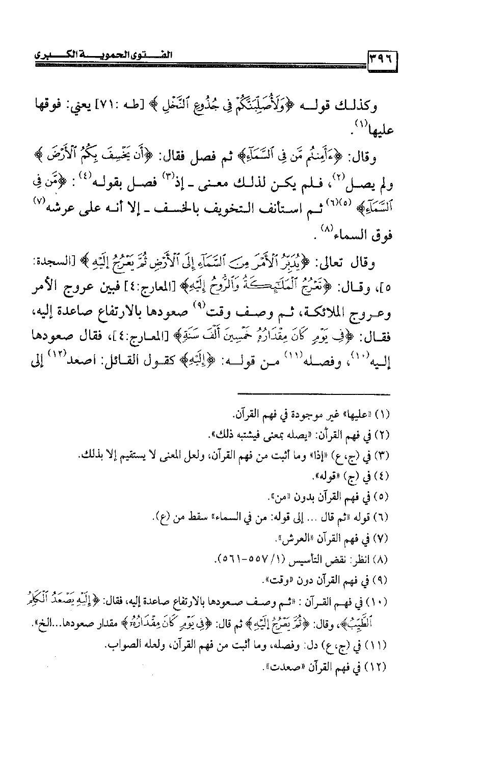 وقال تعالى: {يُدَبِّرُ الْأَمْرَ مِنَ السَّمَاءِ إِلَى الْأَرْضِ ثُمَّ يَعْرُجُ إِلَيْهِ} [السجدة:5] ، وقال: {تَعْرُجُ الْمَلَائِكَةُ وَالرُّوحُ إِلَيْهِ} [المعارج:4] فبين عروج الأمر وعروج الملائكة، ثم وصف وقت صعودها بالارتفاع صاعدة إليه، فقال: {فِي يَوْمٍ كَانَ مِقْدَارُهُ خَمْسِينَ أَلْفَ سَنَةٍ} [المعارج:4] ، فقال صعودها إليه، وفصله من قوله: {إِلَيْهِ} كقول القائل: اصعد إلى