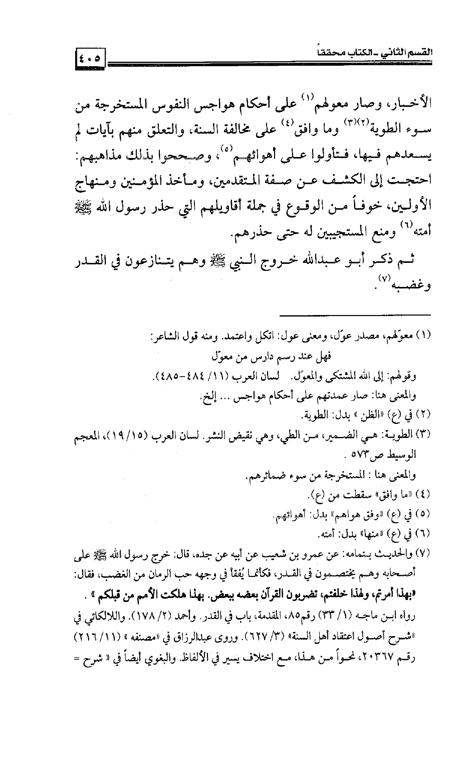 ثم ذكر أبو عبد الله خروج النبي صلى الله عليه وسلم وهم يتنازعون في القدر وغضبه.