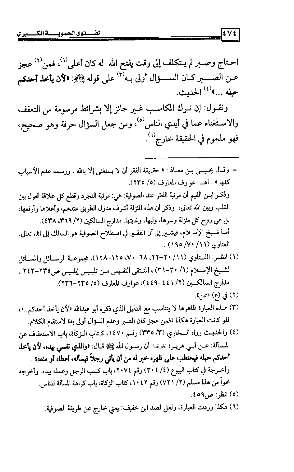 ونقول: إن ترك المكاسب غير جائز إلا بشرائط مرسومة من التعفف والاستغناء عما في أيدي الناس، ومن جعل السؤال حرفة وهو صحيح، فهو مذموم في الحقيقة خارج.