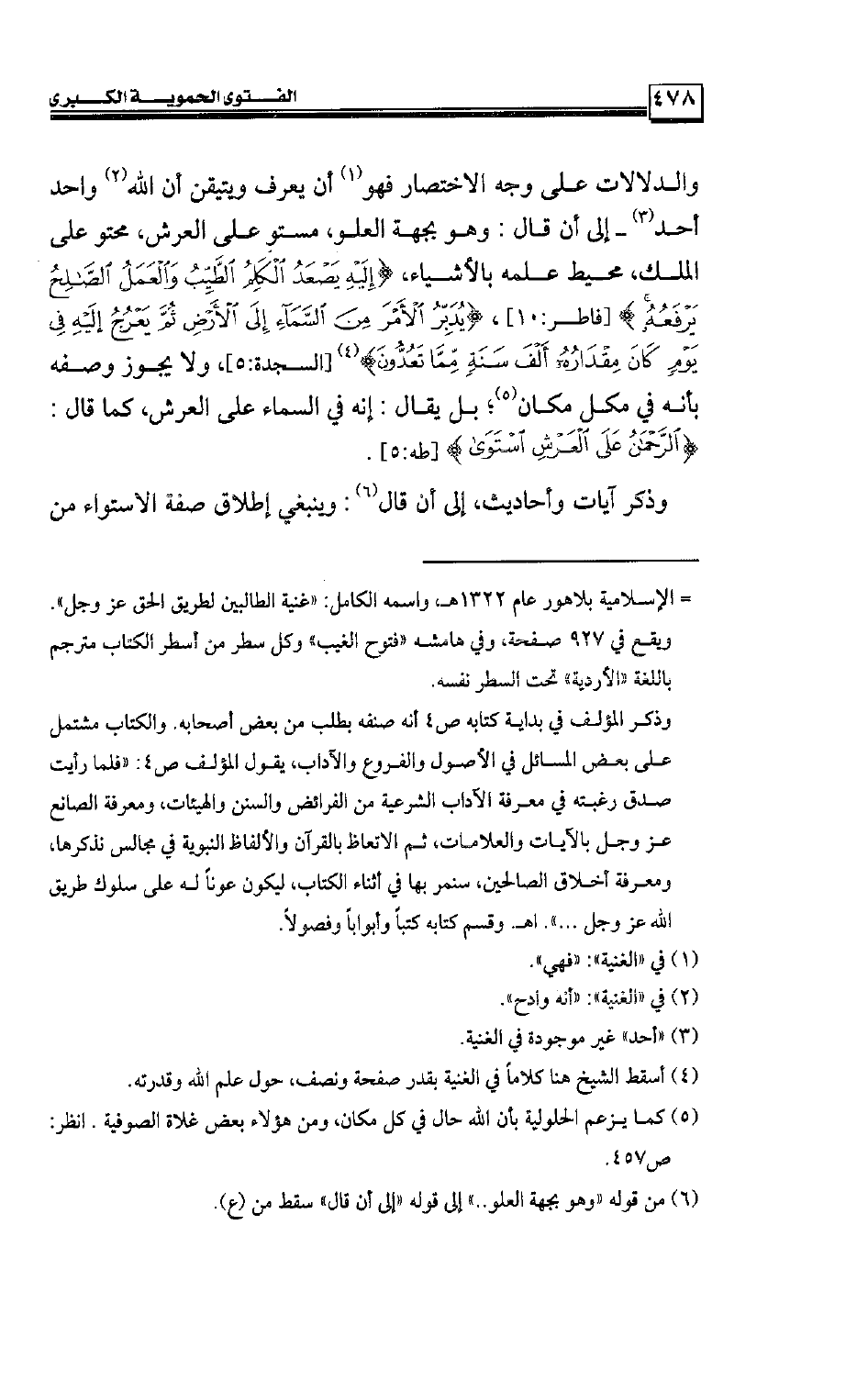 وذكر آيات وأحاديث، إلى أن قال: وينبغي إطلاق صفة الاستواء من