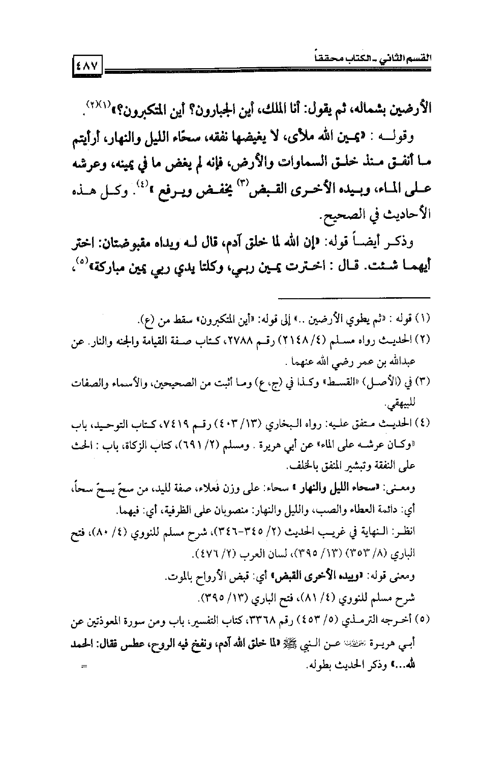 وقوله: «يمين الله ملأى، لا يَغِيضُها نفقة، سَحَّاء الليل والنهار، أرأيتم ما أنفق منذ خلق السماوات والأرض، فإنه لم يغض ما في يمينه، وعرشه على الماء، وبيده الأخرى القبض يخفض ويرفع» . وكل هذه الأحاديث في الصحيح.
