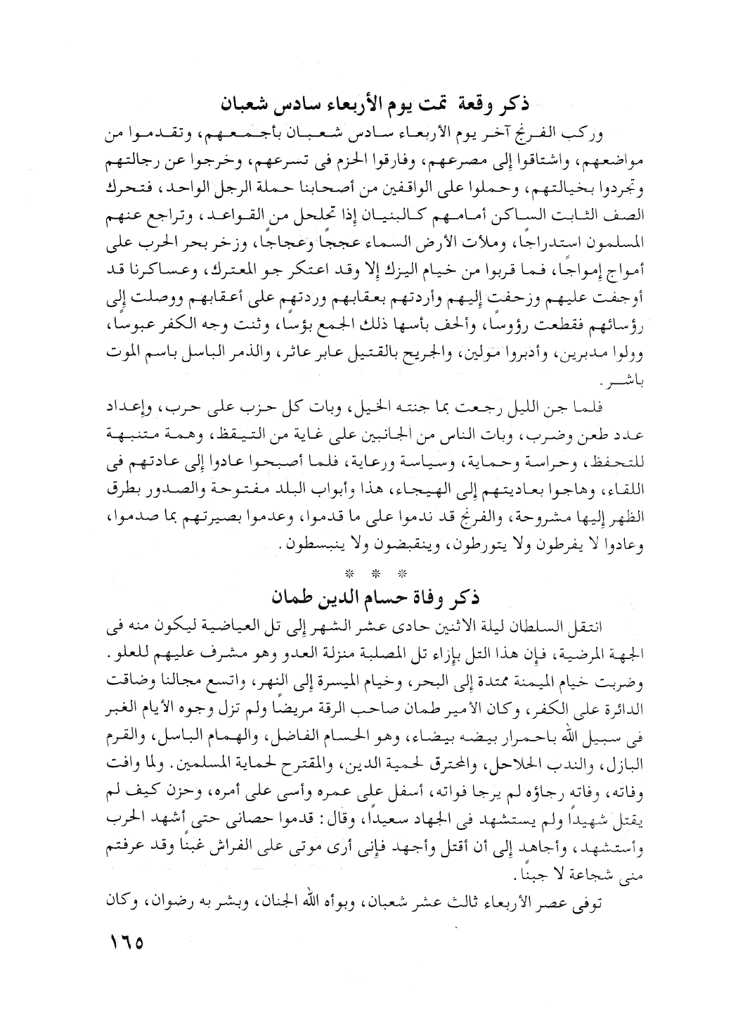 ذكر وقعة تمت يوم الأربعاء سادس شعبان