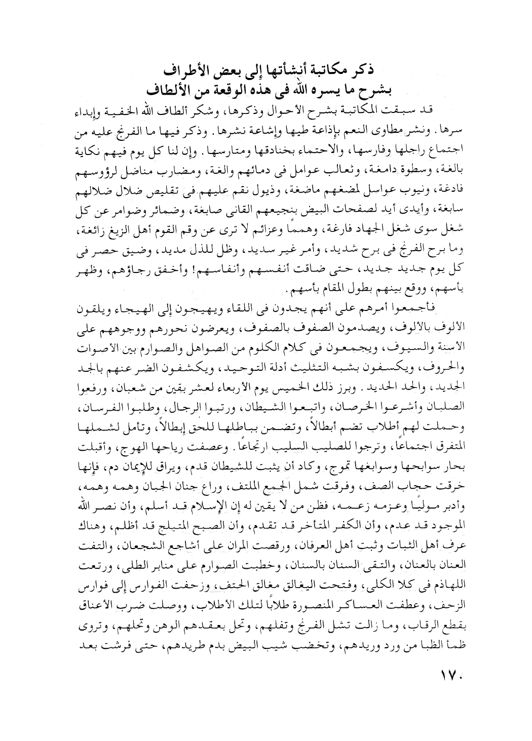 ذكر مكاتبة أنشأتها إلى بعض الأطراف بشرح ما يسره الله في هذه الوقعة من الألطاف