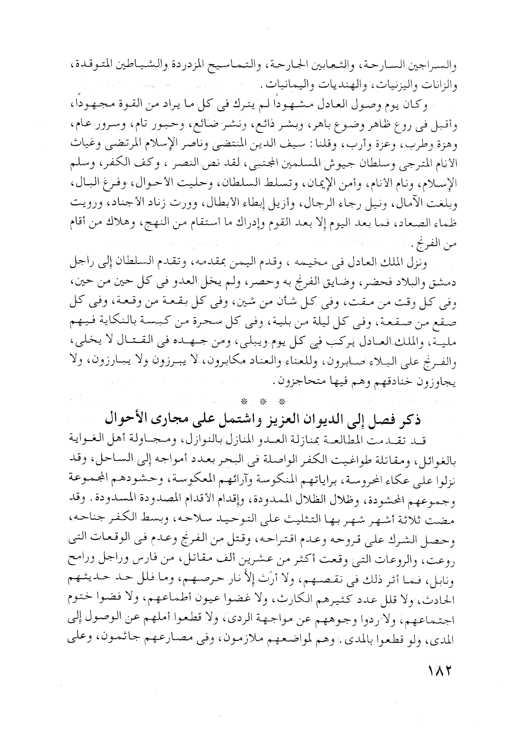 ذكر فصل إلى الديوان العزيز واشتمل على مجاري الأحوال