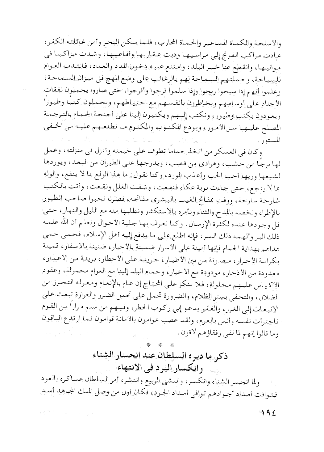 ذكر ما دبره السلطان عند انحسار الشتاء وانكسار البرد في الانتهاء