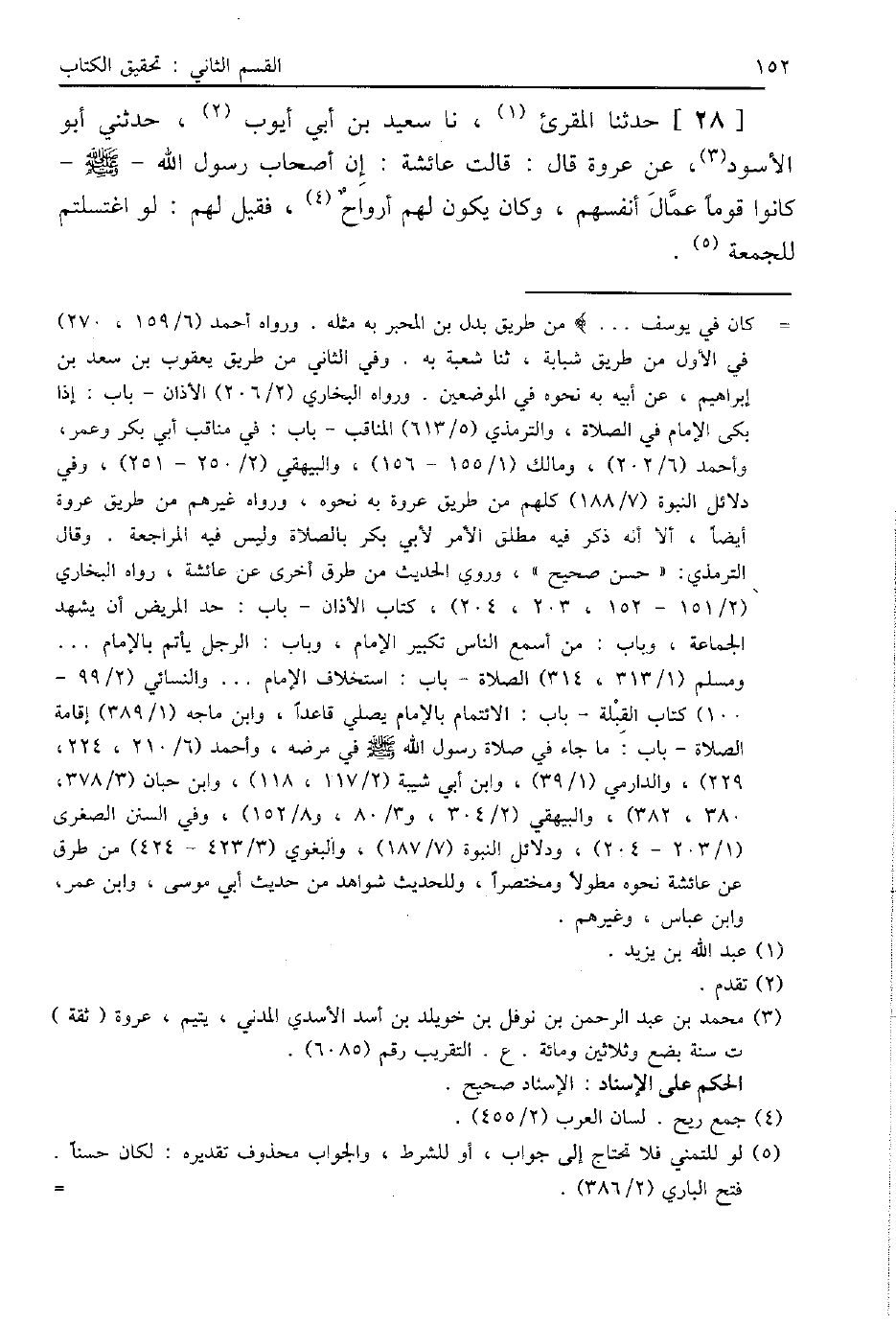 28 - حَدَّثَنَا الْمُقْرِئُ، نا سَعِيدُ بْنُ أَبِي أَيُّوبَ، حَدَّثَنِي أَبُو الْأَسْوَدِ، عَنْ عُرْوَةَ، قَالَ: قَالَتْ عَائِشَةُ: " إِنَّ أَصْحَابَ رَسُولِ اللَّهِ صَلَّى اللهُ عَلَيْهِ وَسَلَّمَ كَانُوا قَوْمًا عُمَّالَ أَنْفُسِهِمْ، وَكَانَ يَكُونُ لَهُمْ أَرْوَاحٌ، فَقِيلَ لَهُمْ: §لَوِ اغْتَسَلْتُمْ لِلْجُمُعَةِ "