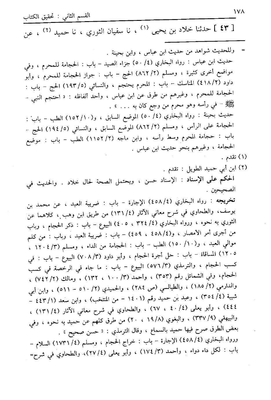 43 - حَدَّثَنَا خَلَّادُ بْنُ يَحْيَى، نا سُفْيَانُ الثَّوْرِيُّ، نا حُمَيْدٌ، عَنْ -[179]- أَنَسٍ، قَالَ: «§احْتَجَمَ النَّبِيُّ صَلَّى اللهُ عَلَيْهِ وَسَلَّمَ وَأَعْطَى الْحَجَّامَ أَجْرَهُ»