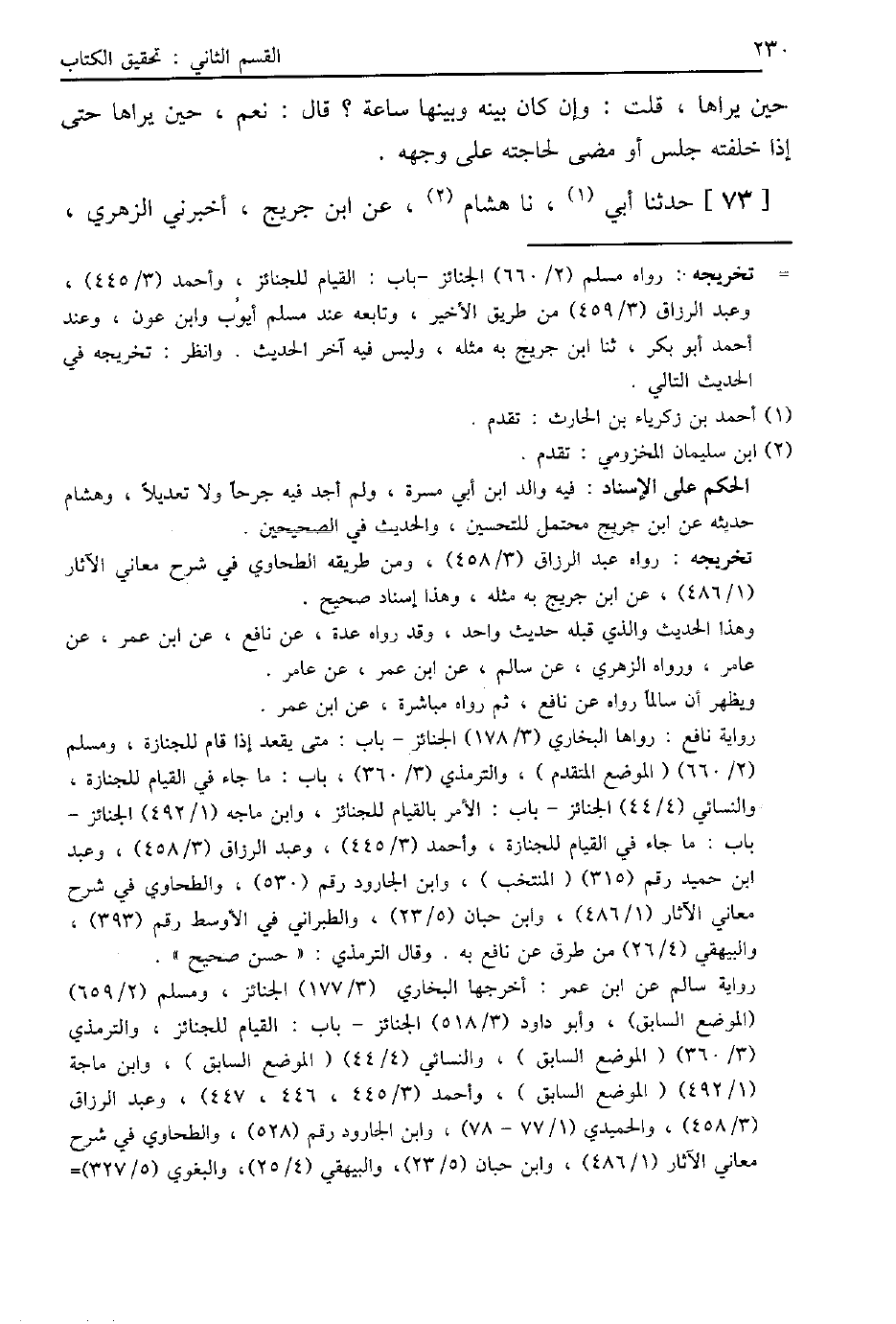 73 - حَدَّثَنَا أَبِي، نا هِشَامٌ، عَنِ ابْنِ جُرَيْجٍ، أَخْبَرَنِي الزُّهْرِيُّ، -[231]- عَنْ سَالِمٍ، عَنْ نَافِعٍ، عَنِ ابْنِ عُمَرَ، عَنْ عَامِرِ بْنِ رَبِيعَةَ الْعَدَوِيِّ، عَنْ رَسُولِ اللَّهِ صَلَّى اللهُ عَلَيْهِ وَسَلَّمَ قَالَ: «§إِذَا رَأَيْتُمُ الْجِنَازَةَ فَقُومُوا لَهَا حَتَّى تُخَلِّفَكُمْ»