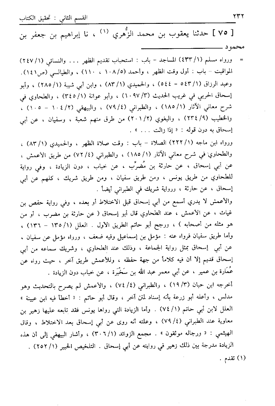 75 - حَدَّثَنَا يَعْقُوبُ بْنُ مُحَمَّدٍ الزُّهْرِيُّ، نا إِبْرَاهِيمُ بْنُ جَعْفَرِ بْنِ -[233]- مَحْمُودِ بْنِ مُحَمَّدِ بْنِ مَسْلَمَةَ، عَنْ أَبِيهِ، عَنْ جَدِّهِ، عَنْ مُحَمَّدِ بْنِ مَسْلَمَةَ «أَنَّ رَسُولَ اللَّهِ صَلَّى اللهُ عَلَيْهِ وَسَلَّمَ بَعَثَهُ إِلَى بَنِي النَّضِيرِ، §وَأَمَرَهُ أَنْ يُؤَجِّلَهُمْ فِي الْجَلَاءِ ثَلَاثَ لَيَالٍ»