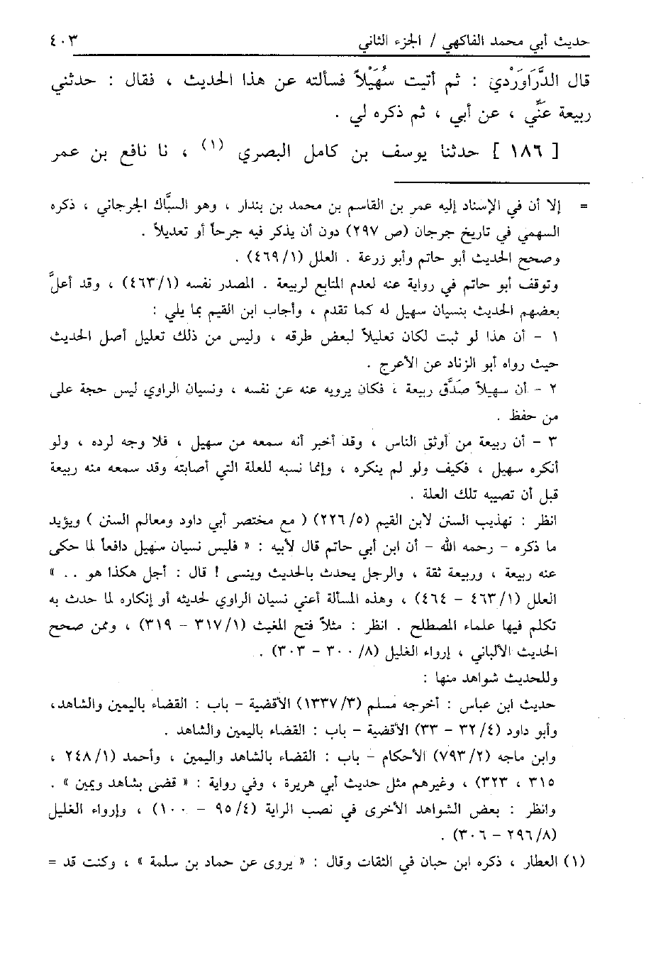 186 - حَدَّثَنَا يُوسُفُ بْنُ كَامِلٍ الْبَصْرِيُّ، نا نَافِعُ بْنُ عُمَرَ -[404]- الْجُمَحِيُّ، حَدَّثَنِي ابْنُ أَبِي مُلَيْكَةَ، قَالَ: كَانَ ابْنُ الزُّبَيْرِ إِذَا حَدَّثَ عَنْ عَائِشَةَ حَدِيثًا قَالَ: وَاللَّهِ §لَا تَكْذِبُ عَائِشَةُ عَلَى رَسُولِ اللَّهِ صَلَّى اللهُ عَلَيْهِ وَسَلَّمَ أَبَدًا