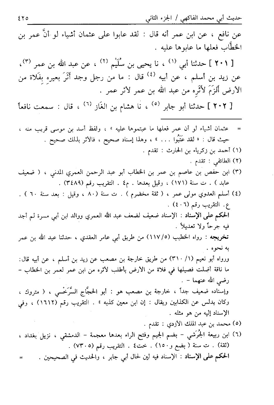 201 - حَدَّثَنَا أَبِي، نا يَحْيَى بْنُ سُلَيْمٍ، عَنْ عَبْدِ اللَّهِ بْنِ عُمَرَ، عَنْ زَيْدِ بْنِ أَسْلَمَ، عَنْ أَبِيهِ، قَالَ: «§مَا مِنْ رَجُلٍ وَجَدَ أَثَرَ بَعِيرِهِ بِفَلَاةٍ مِنَ الْأَرْضِ أَلْزَمَ لِأَثَرِهِ مِنْ عَبْدِ اللَّهِ بْنِ عُمَرَ لِأَثَرِ عُمَرَ»