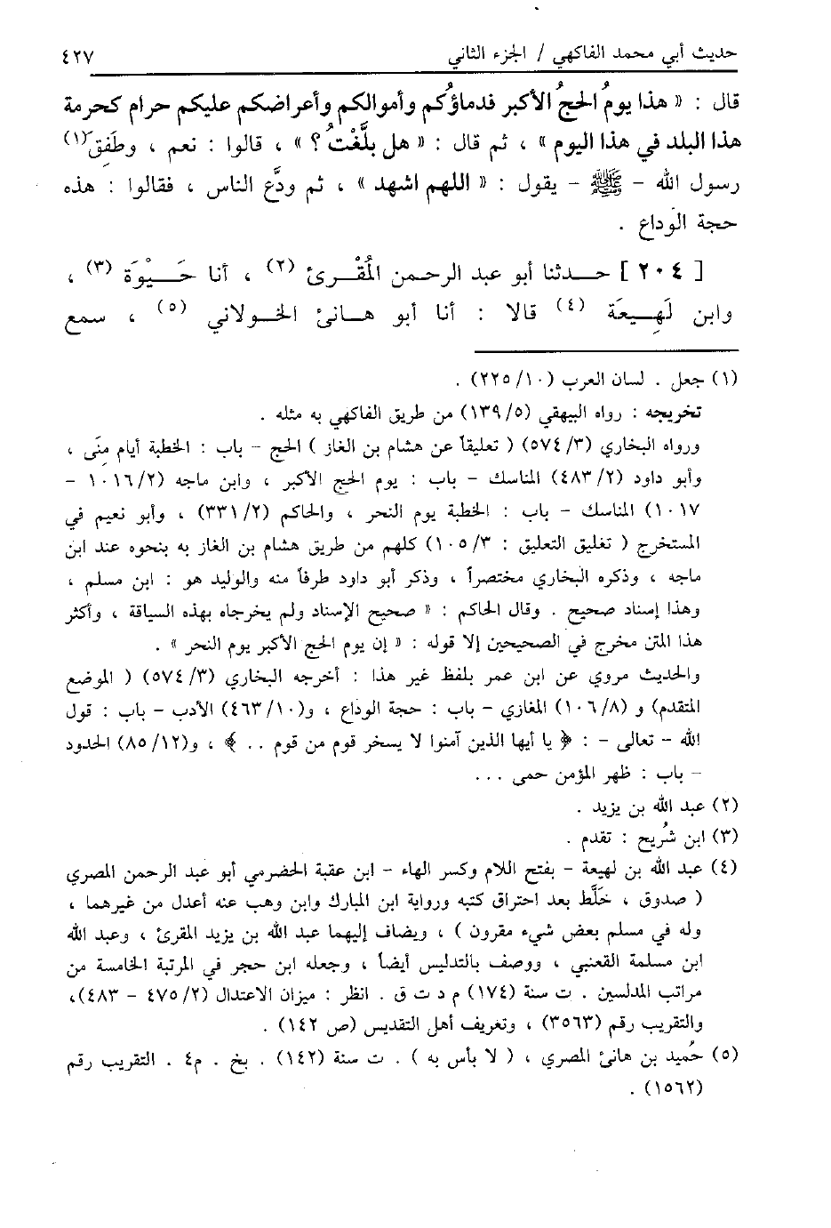 204 - حَدَّثَنَا أَبُو عَبْدِ الرَّحْمَنِ الْمُقْرِئُ، أنا حَيْوَةُ، وَابْنُ لَهِيعَةَ قَالَا: أنا أَبُو هَانِئٍ الْخَوْلَانِيُّ، سَمِعَ -[428]- أَبَا عَبْدِ الرَّحْمَنِ الْحُبُلِيَّ، قَالَ: سَمِعْتُ عَبْدَ اللَّهِ بْنَ عَمْرٍو، قَالَ: سَمِعْتُ رَسُولَ اللَّهِ صَلَّى اللهُ عَلَيْهِ وَسَلَّمَ يَقُولُ: «§قَدَّرَ اللَّهُ الْمَقَادِيرَ قَبْلَ أَنْ يَخْلُقَ السَّمَاوَاتِ وَالْأَرْضَ بِخَمْسِينَ أَلْفِ سَنَةٍ»